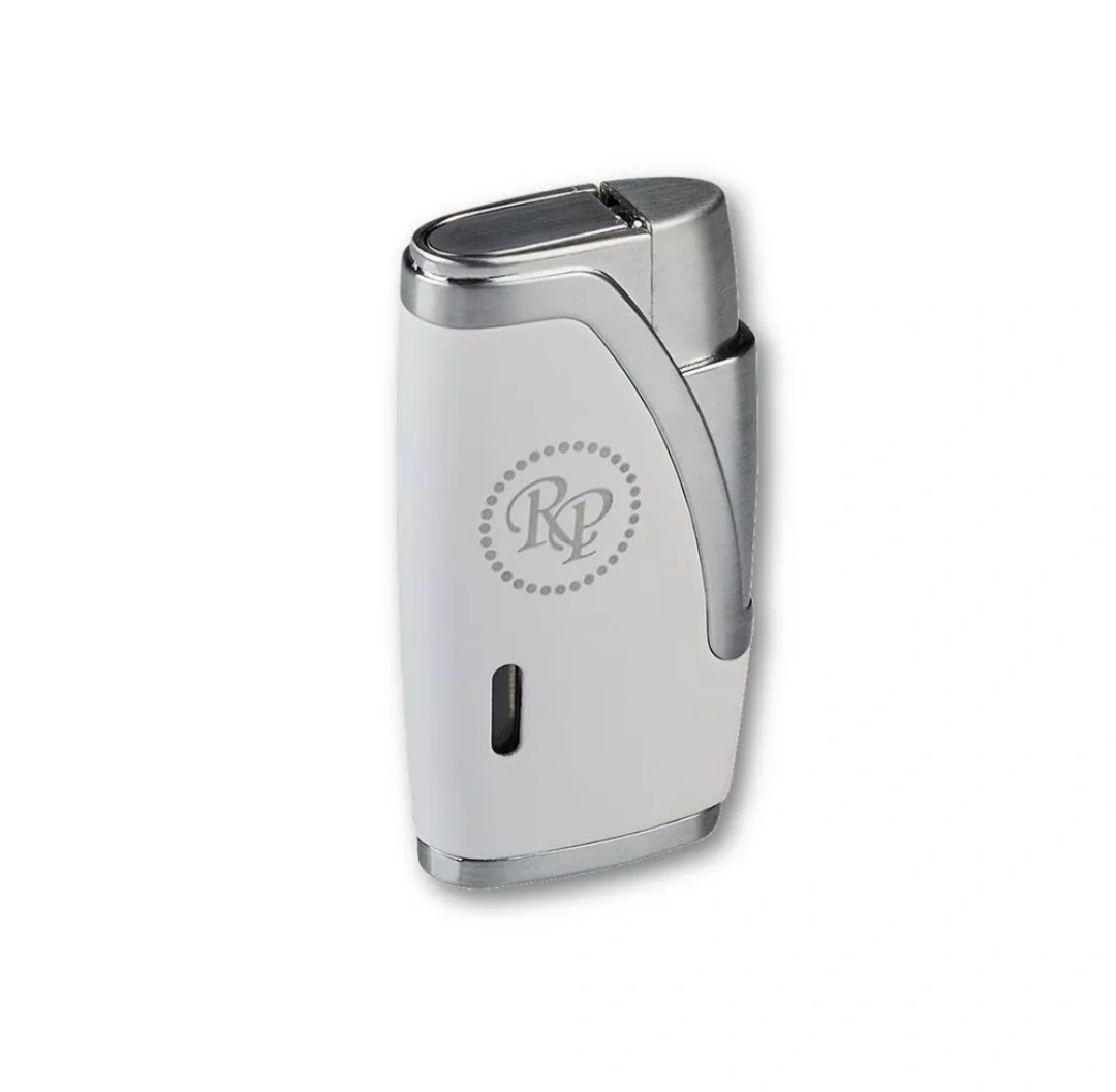 Rocky Patel lighter features a White body with silver accents. Engraved logo. Refills needed.