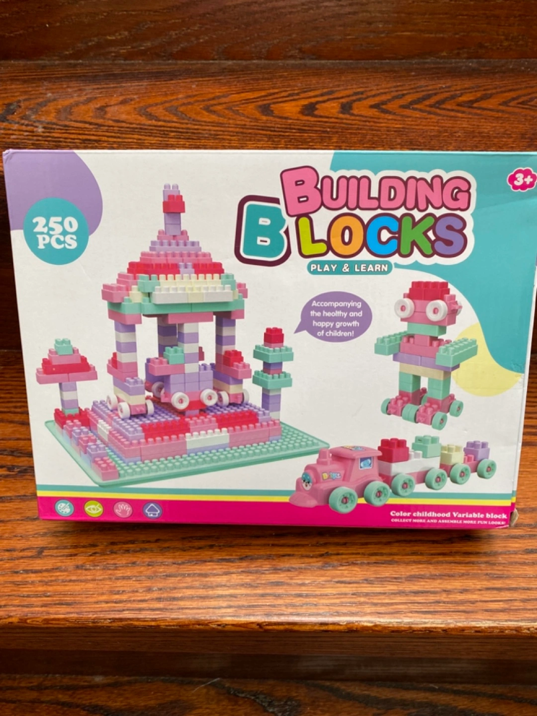 Brand New 250-piece building block set. Pastel colours. Great for imaginative play and learning. Suitable for ages 3+.