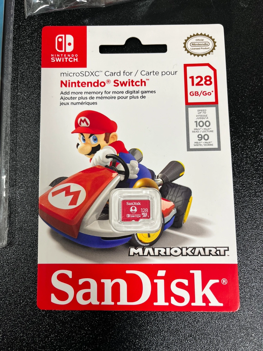 SanDisk MicroSDXC card, 128 GB. Nintendo branded and works with all Nintendo Switches and other devices that use microSD cards.