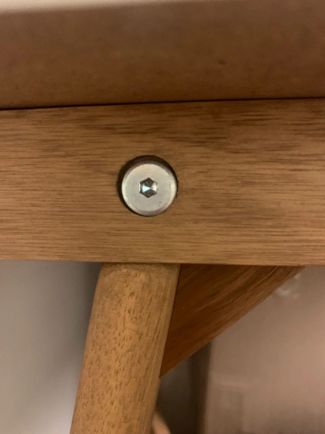 If the table is against a wall, you don’t need to put in the screw, otherwise it’s necessary for more stability. Screw is M5 Allen, can be bought separately online.