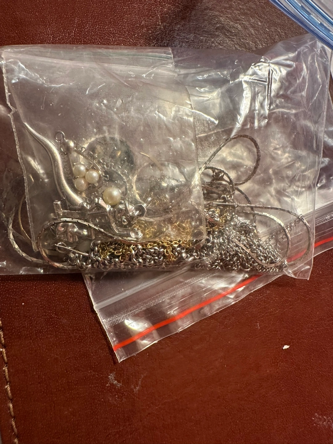 Assortment of necklaces and earrings. Various metals and styles. Broken jewelry Some pearls. Sold as is.