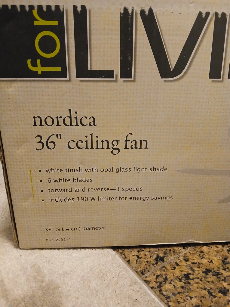 The For Living Nordica Reversible 6-Blade Ceiling Fan with Lighting provides efficient air circulation, enhancing comfort in any room. Ideal for smaller spaces, this fan helps maintain a balanced atmosphere throughout the year. Its classic white finish and contemporary design seamlessly blend into bedrooms, kitchens, or living areas, adding both comfort and style to your home while complementing modern dรฉcor. The compact size makes it a versatile choice for various settings.