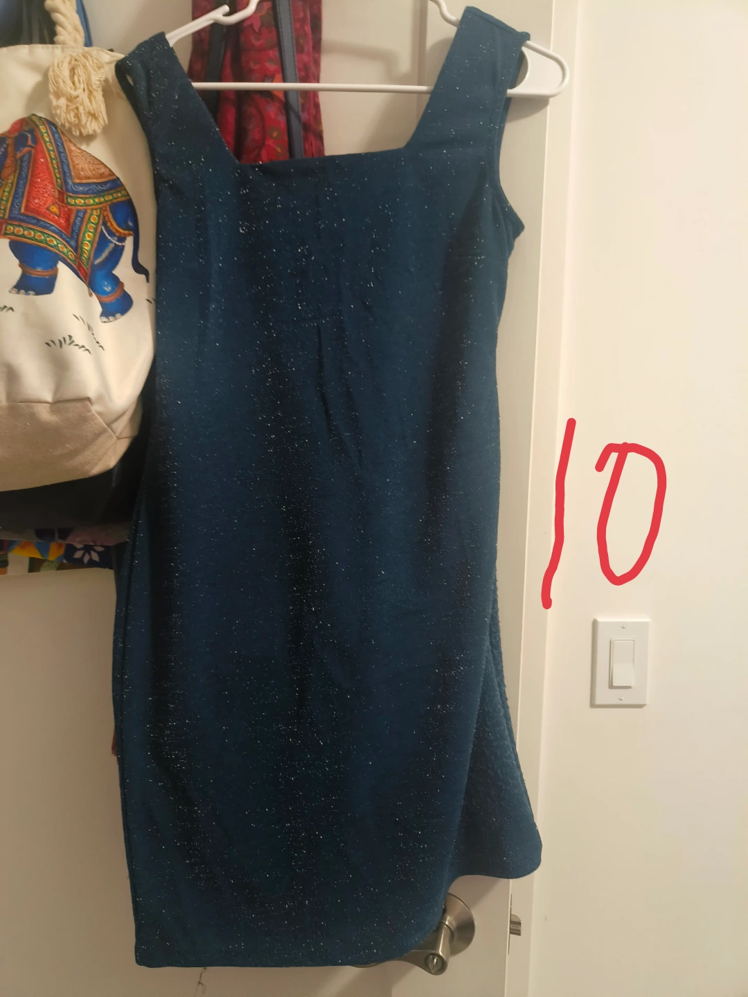 Sleeveless teal midi dress. Square neckline. Subtle sparkle throughout. Great for parties or special occasions.