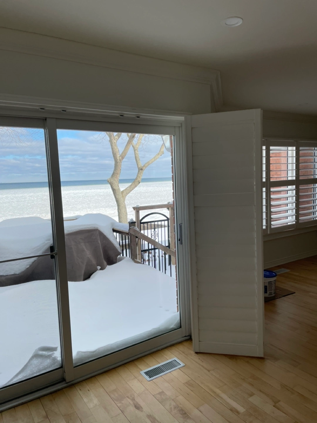 White Plantation Shutters Sliding Patio Door