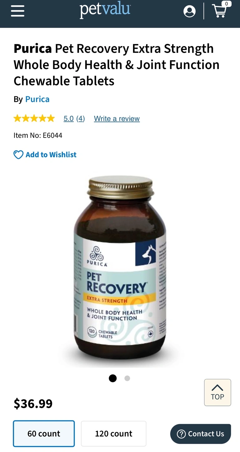 Purica Pet Recovery Extra Strength Whole Body Health & Joint Function Chewable Tablets 60 Count