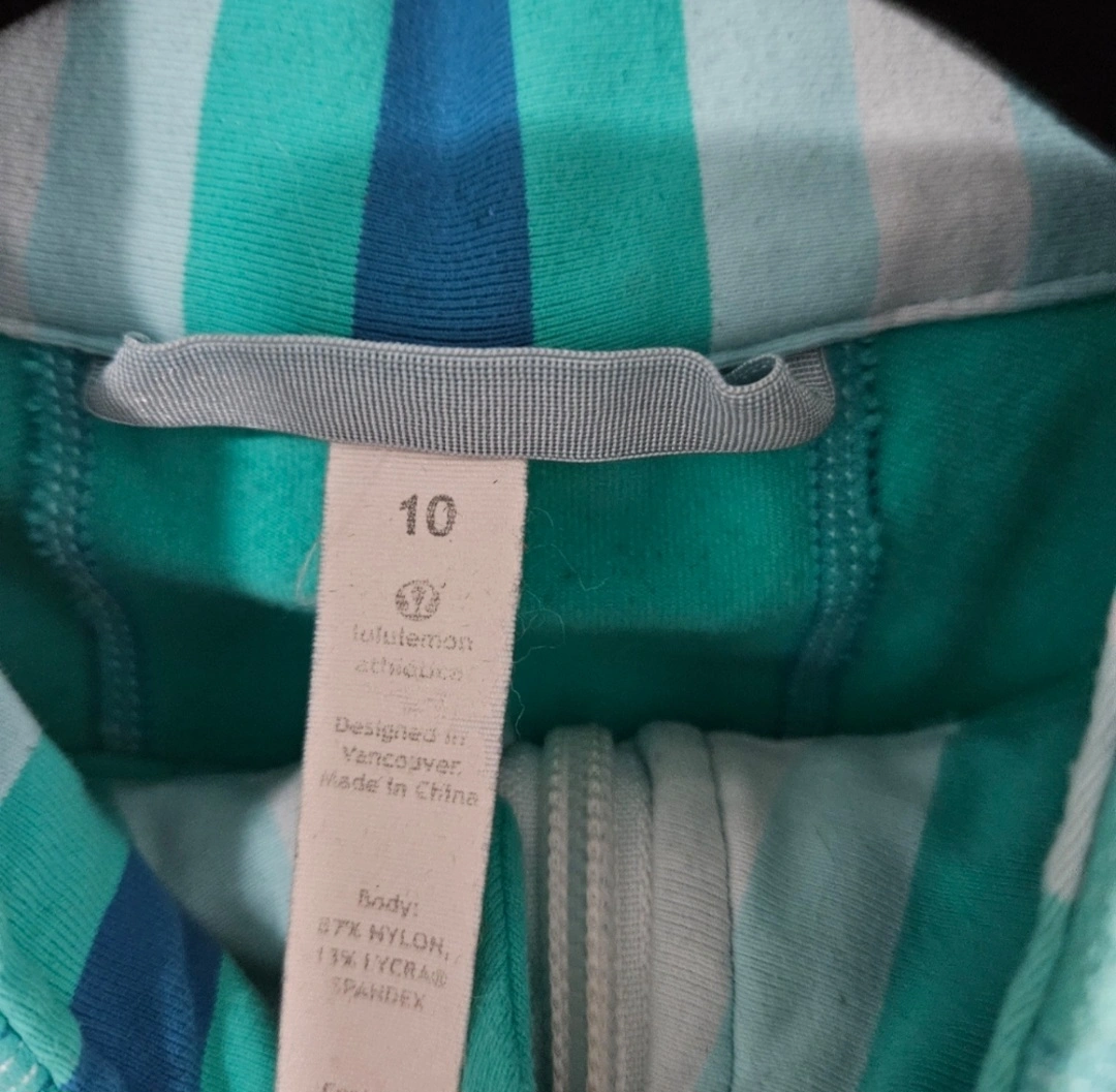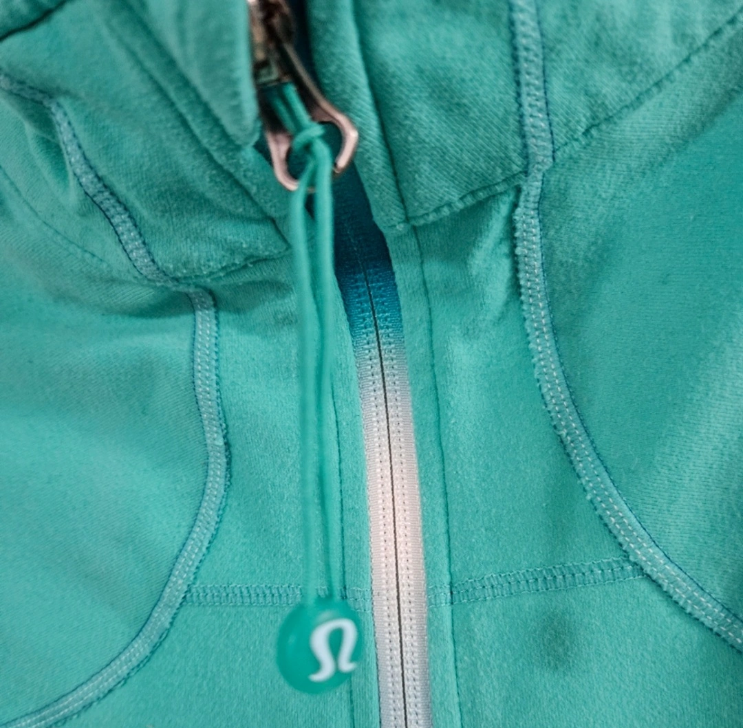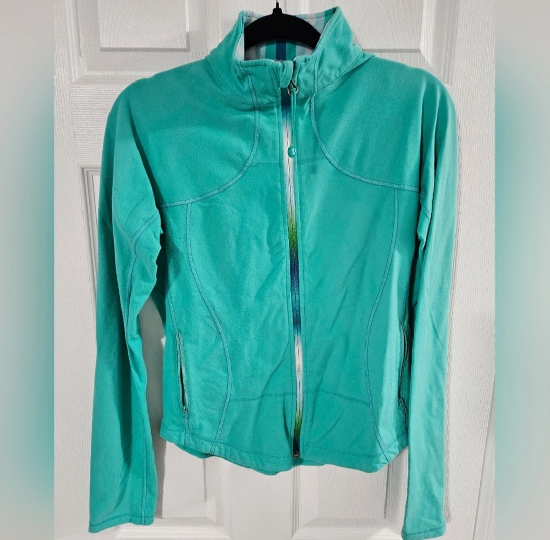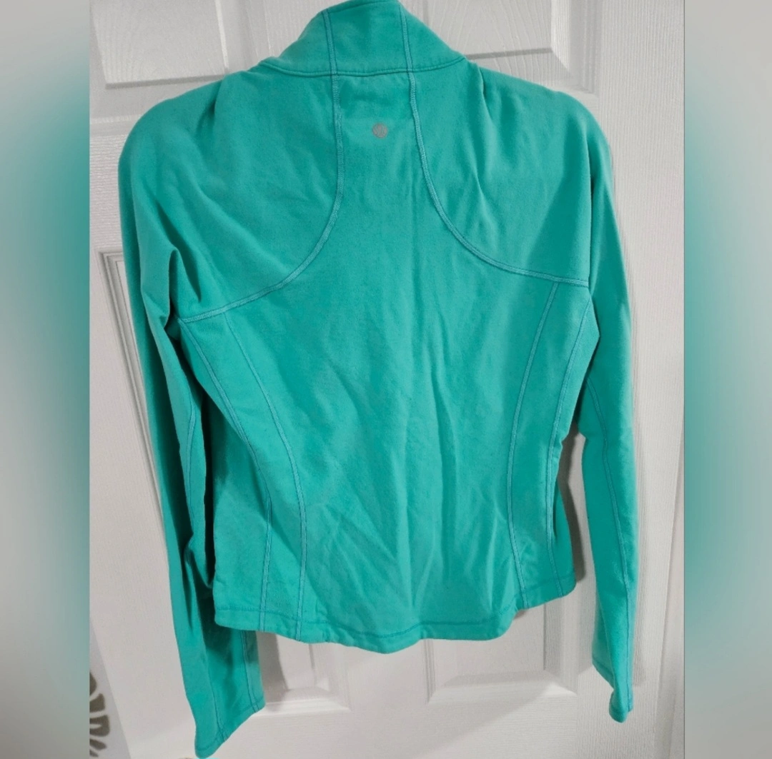 83Lululemon athletic zip-up jacket. Teal colour. Size 10. Long sleeves. Great condition.