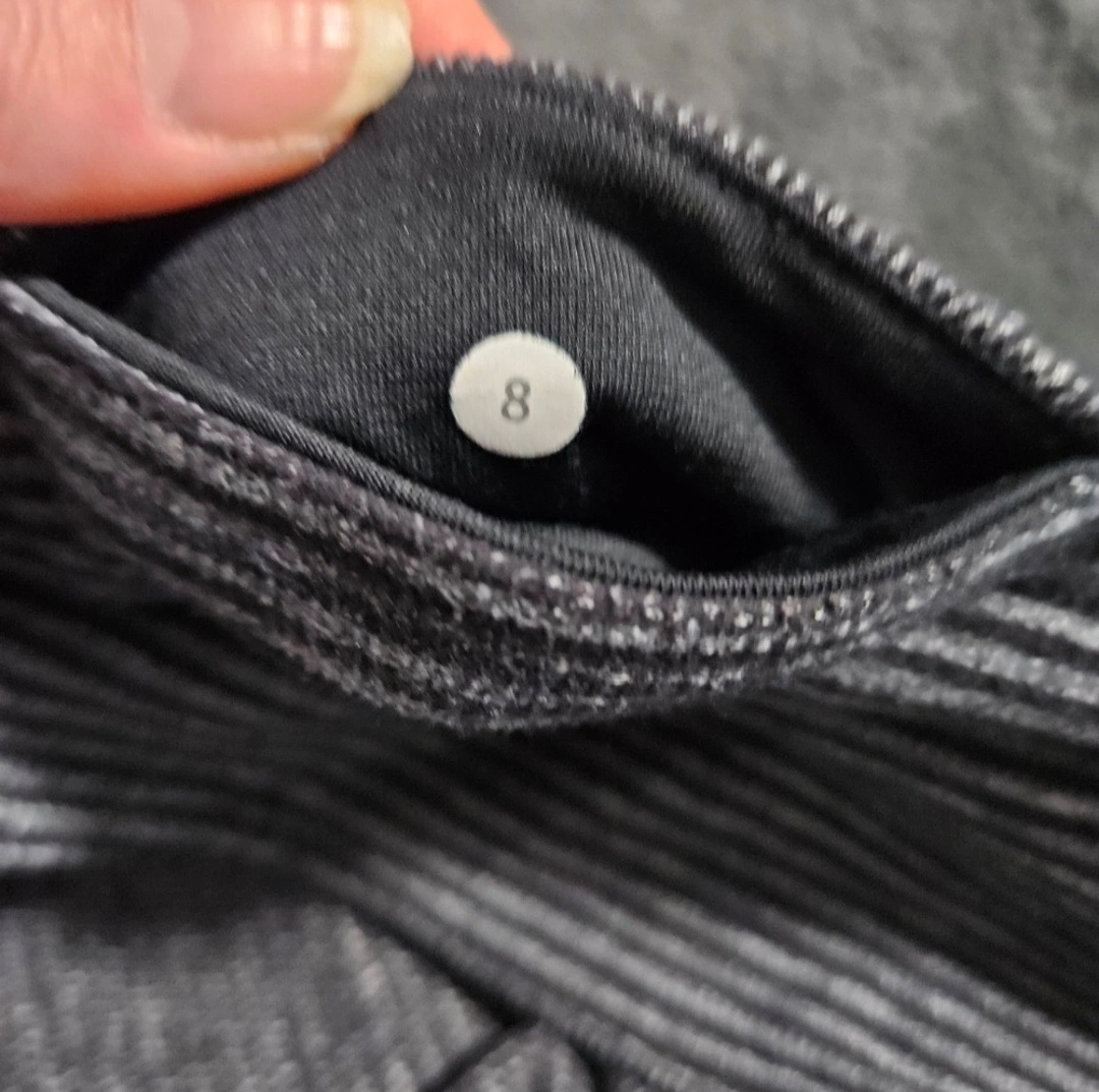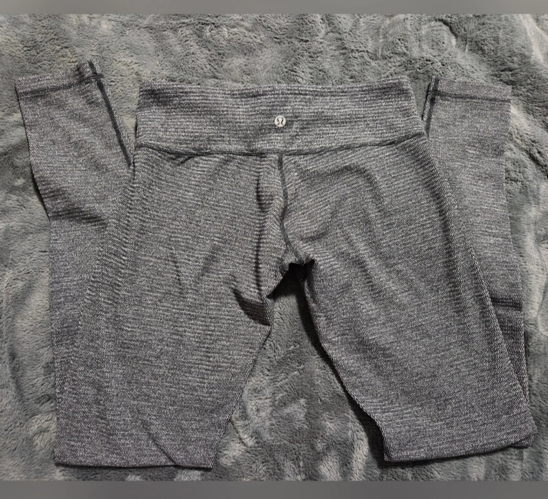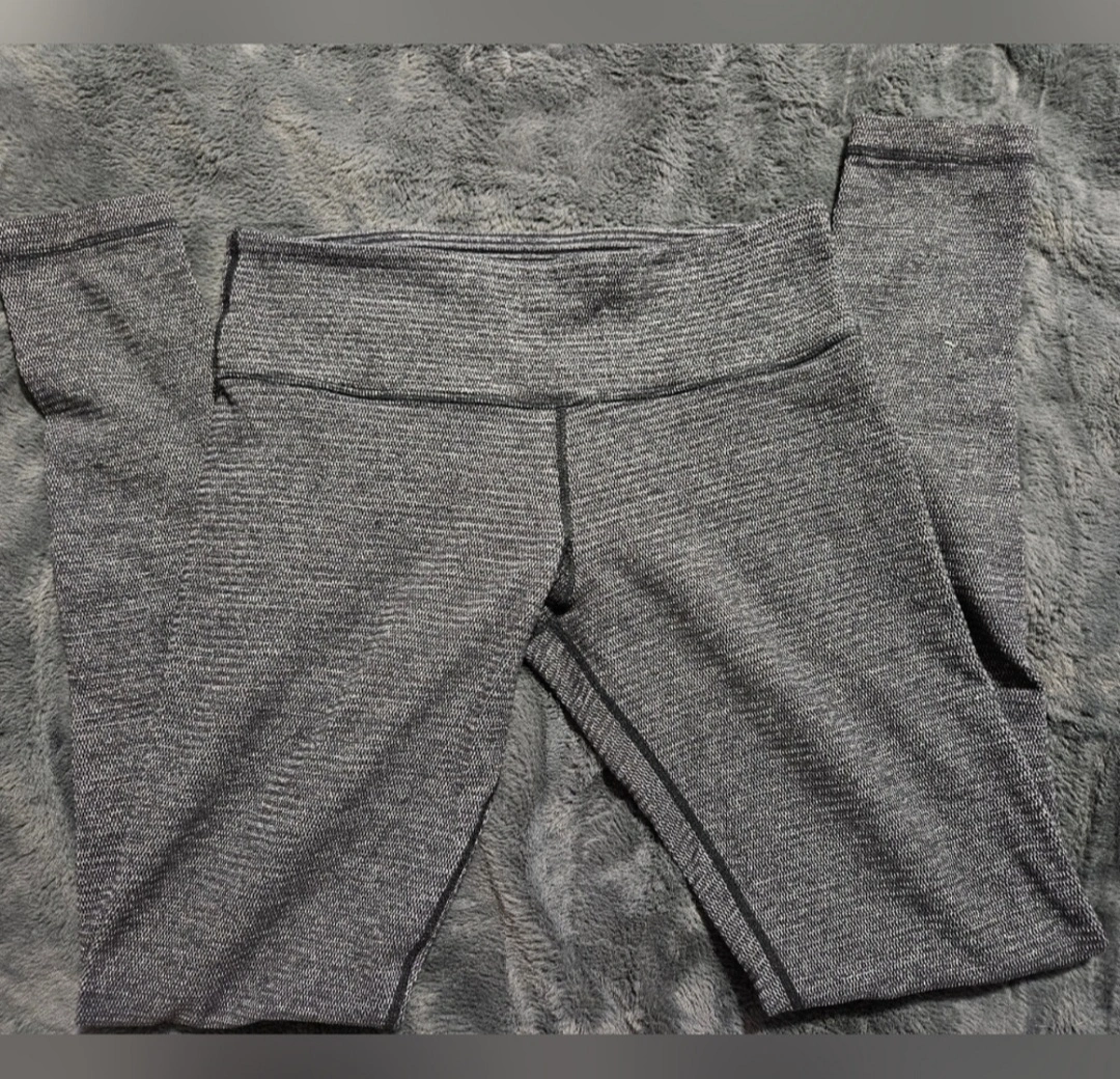 83Lululemon leggings, size 8. Reversible; Grey and white stripe pattern. Full-length. Excellent for yoga or everyday wear.
