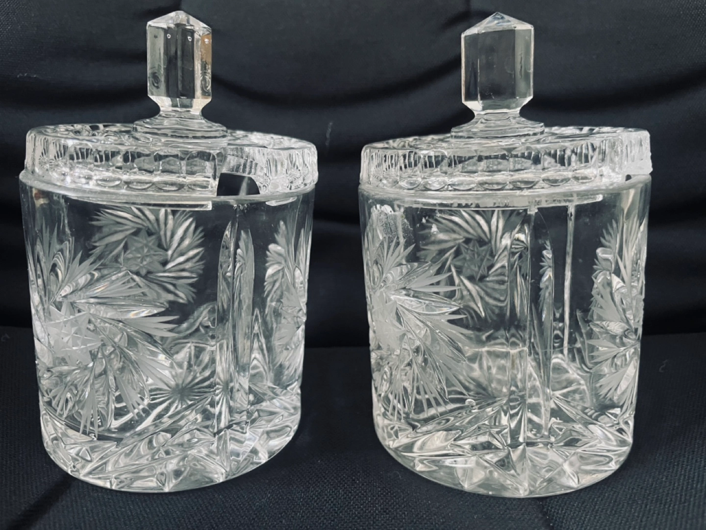 Pair of Vintage Crystal Sugar Bowls with Lids