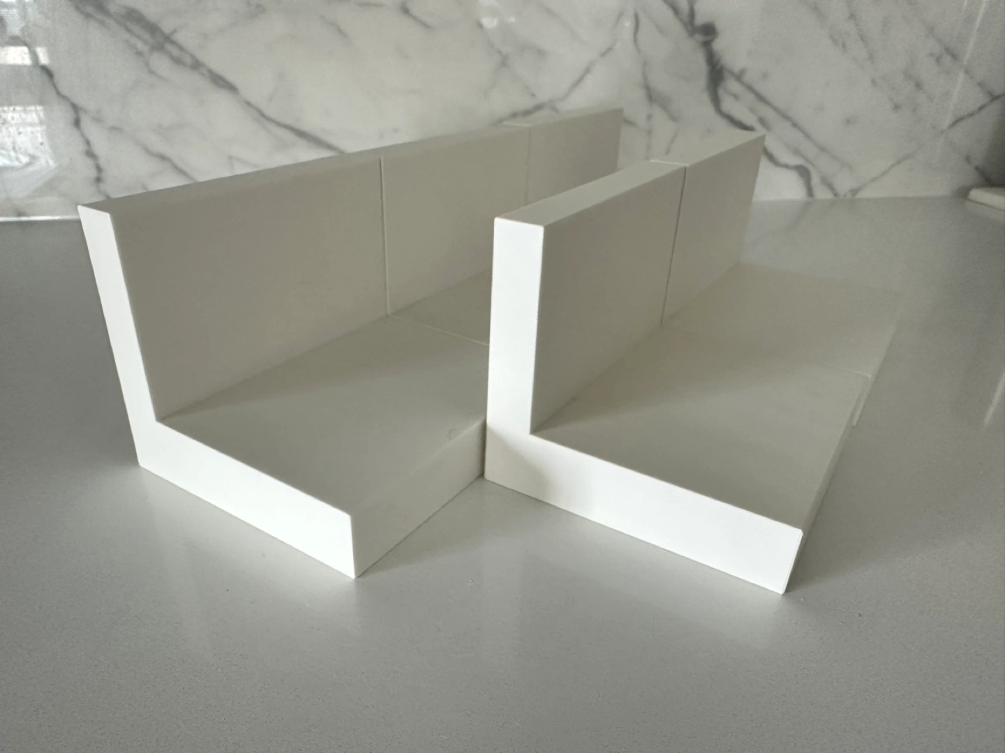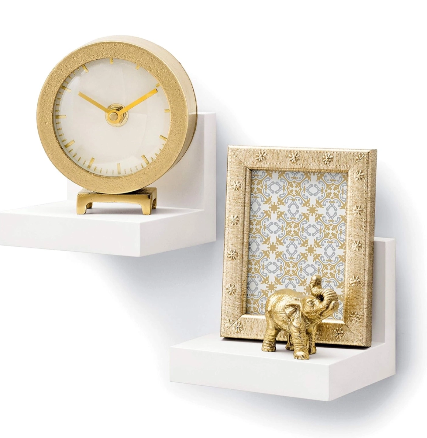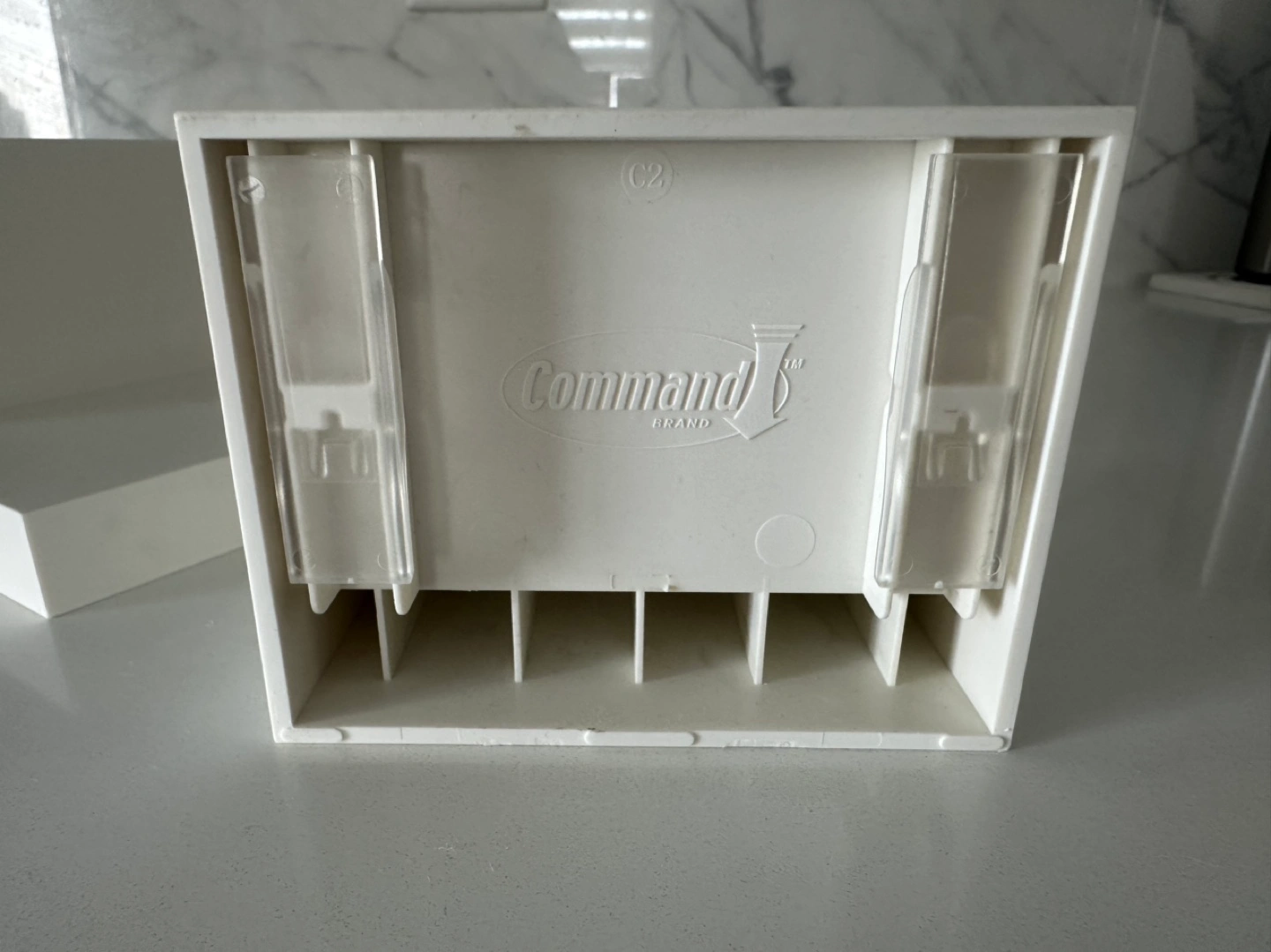 A set of 5 white plastic shelf organizers. Ideal for organizing bathroom or kitchen items. No stripes though, you have to buy it on your own. $10 for 5.