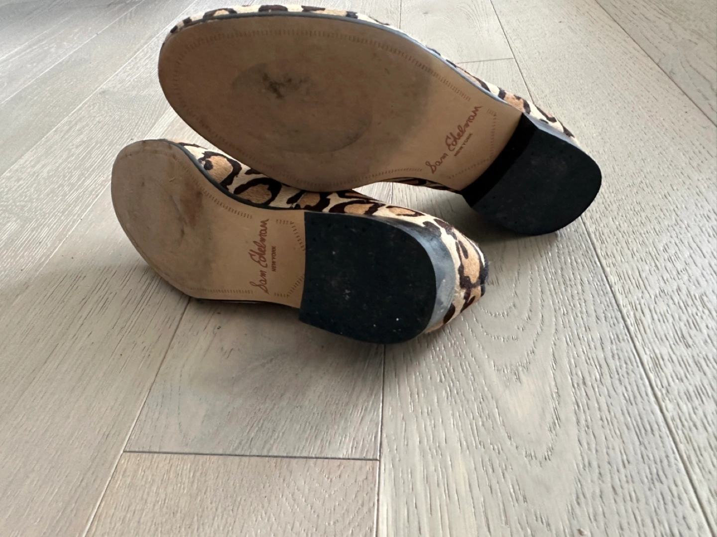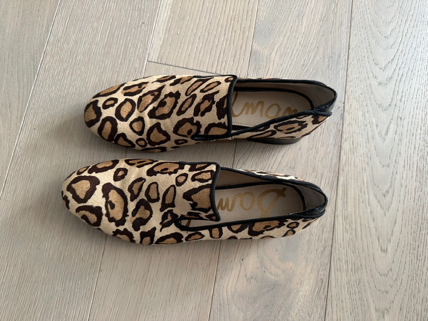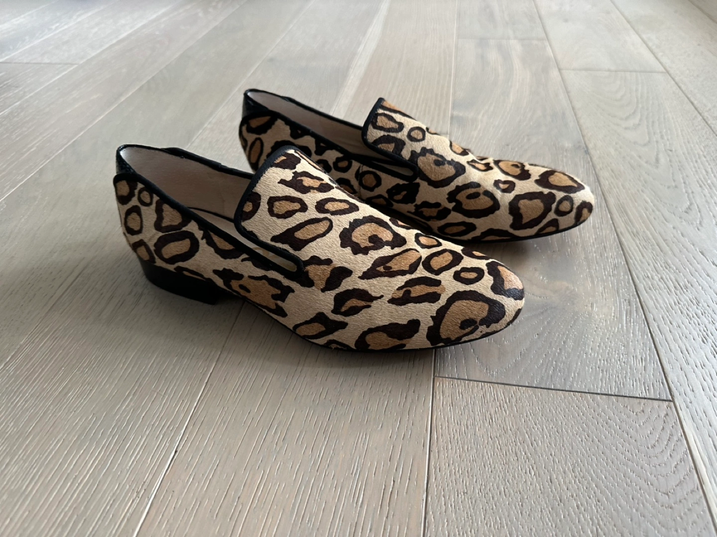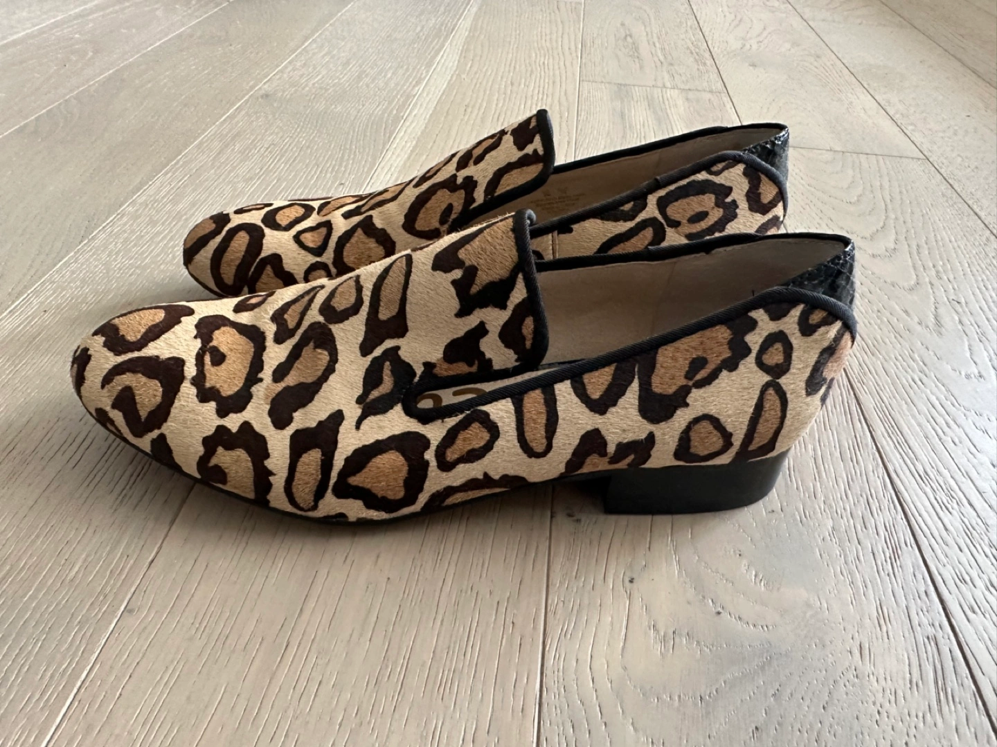 Women's loafers. Leopard print. Low heel. Slip-on style. Great for everyday wear worn only once like new