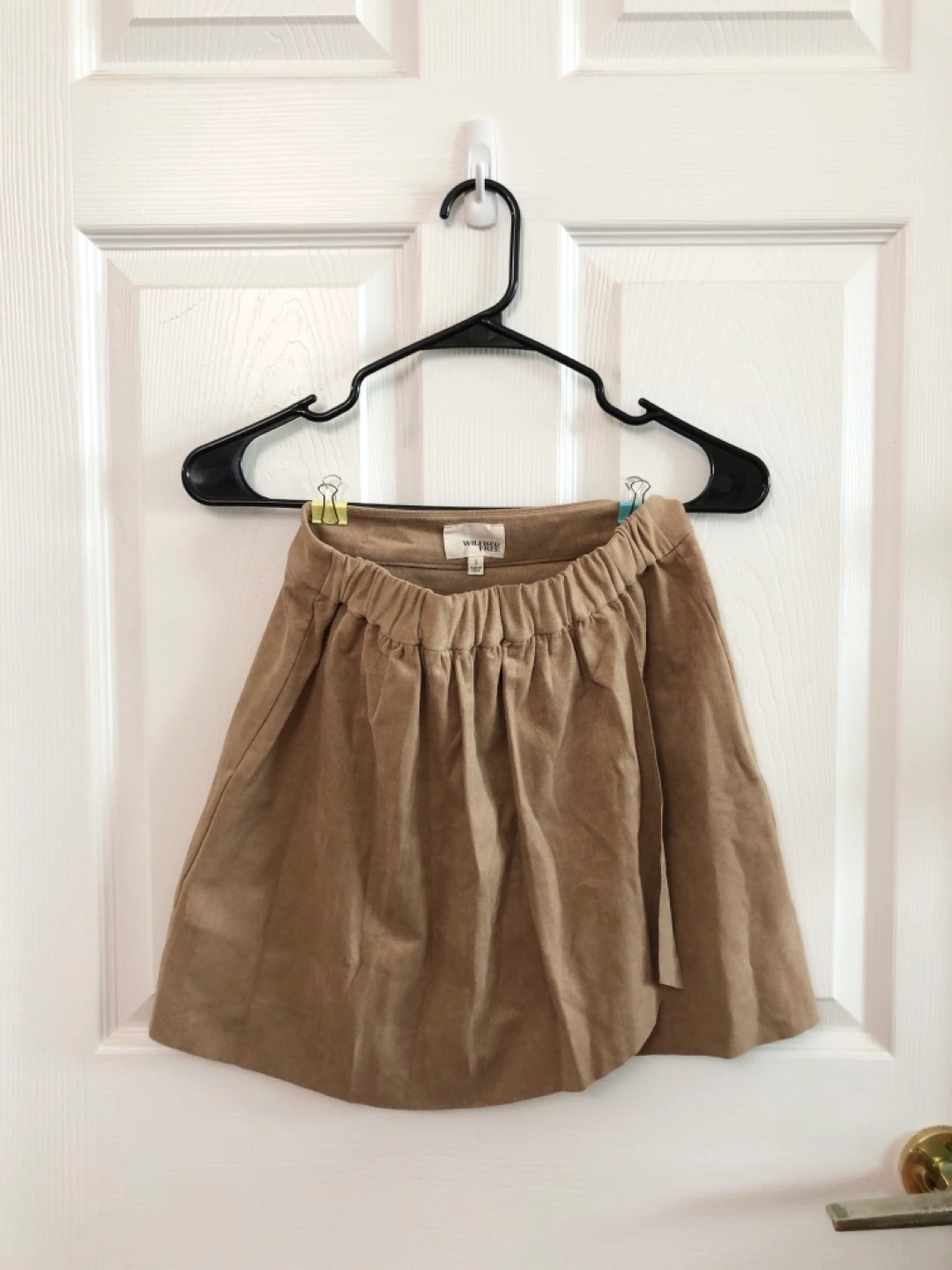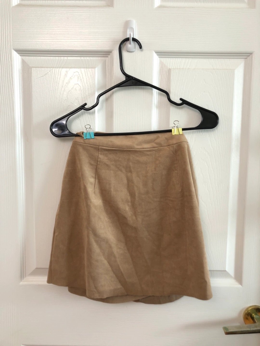 Adorable mini skirt. Brown suede-like material. Elastic waistband. Size small. Professional dry clean only.