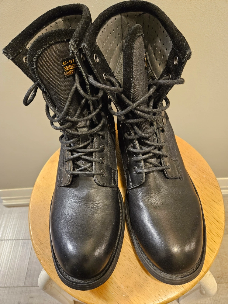 G-STAR Raw, Men's black leather/ Denim lace-up boots in NEW Condition. Bought it for almost $300 few years ago from Browns but never had a chance to wear them. These boots have very good quality materials and workmanship. This pair of boot will definitely last you a long time.