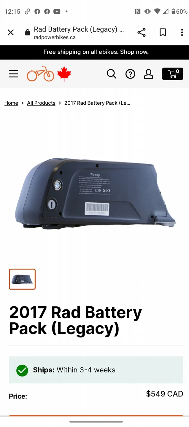 Rad Power Battery Brand New 2017 Rad Battery Pack Legacy - RadRover (2015-2017), RadWagon (2016-2017), RadCity (2017)