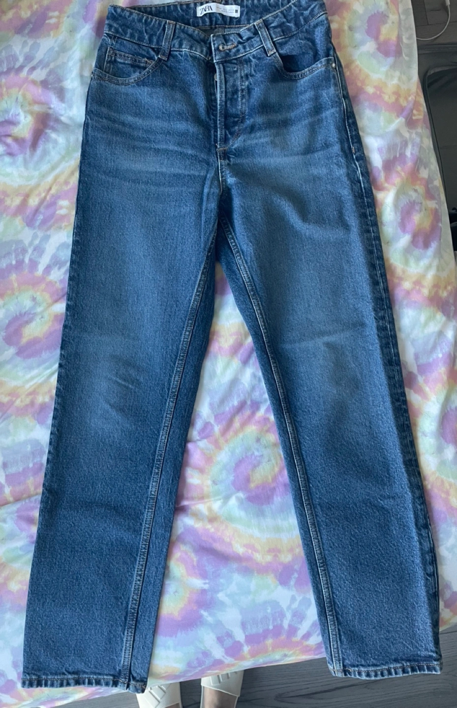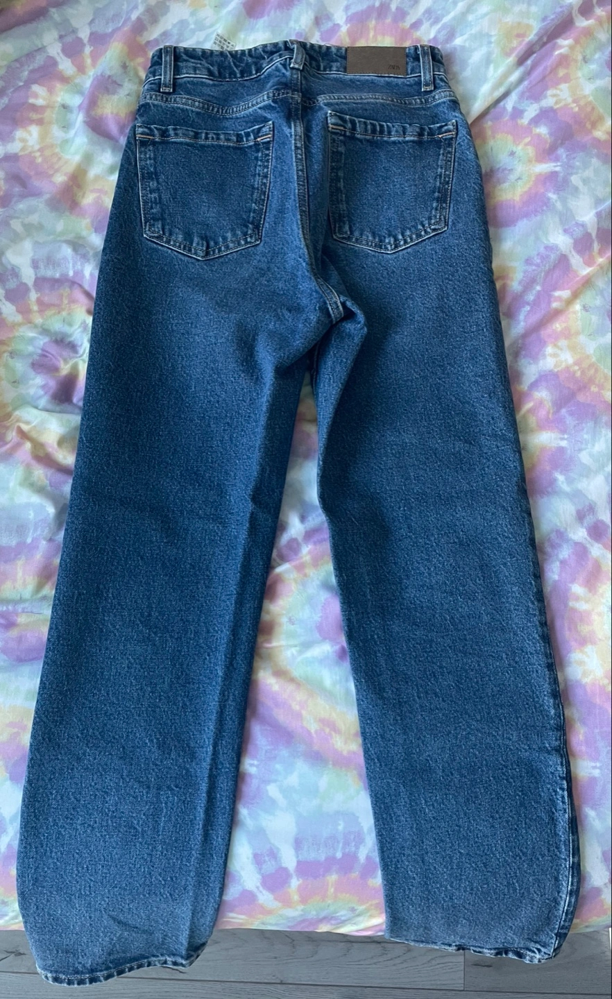 Pair of women's straight leg jeans. Medium wash denim. Classic five-pocket style. Good condition. Wore once, too small for me.