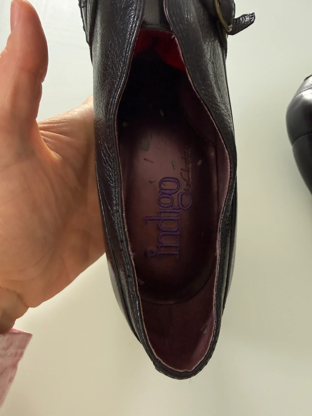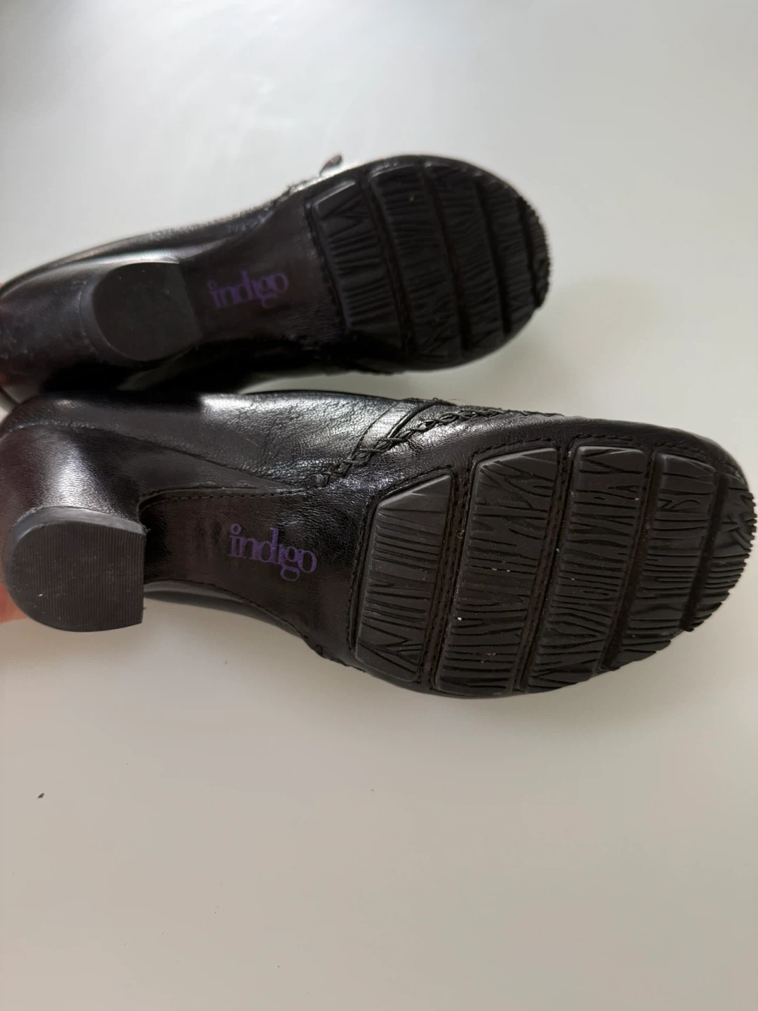These are Indigo by Clarks black leather heels in good condition. They have a stylish design and are comfortable to wear. Perfect for dressing up or down! Never worn outside. Pick up is Coxwell and lower Gerrard.