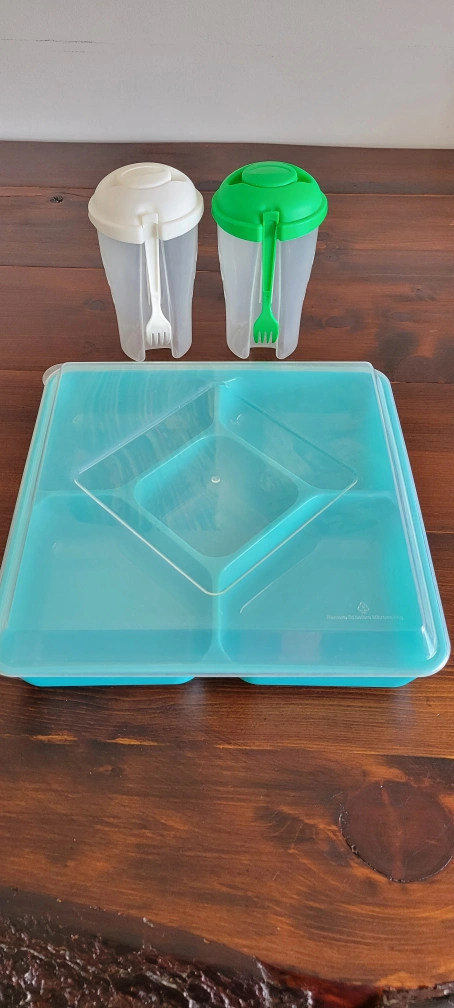 Salad Dressing Shakers & 5-Compartment Food Tray