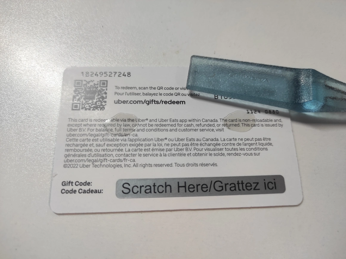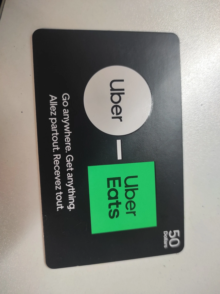 Unused $50 Uber Eats gift card. Redeem online or via the Uber app. Scratch-off code to reveal the gift code.