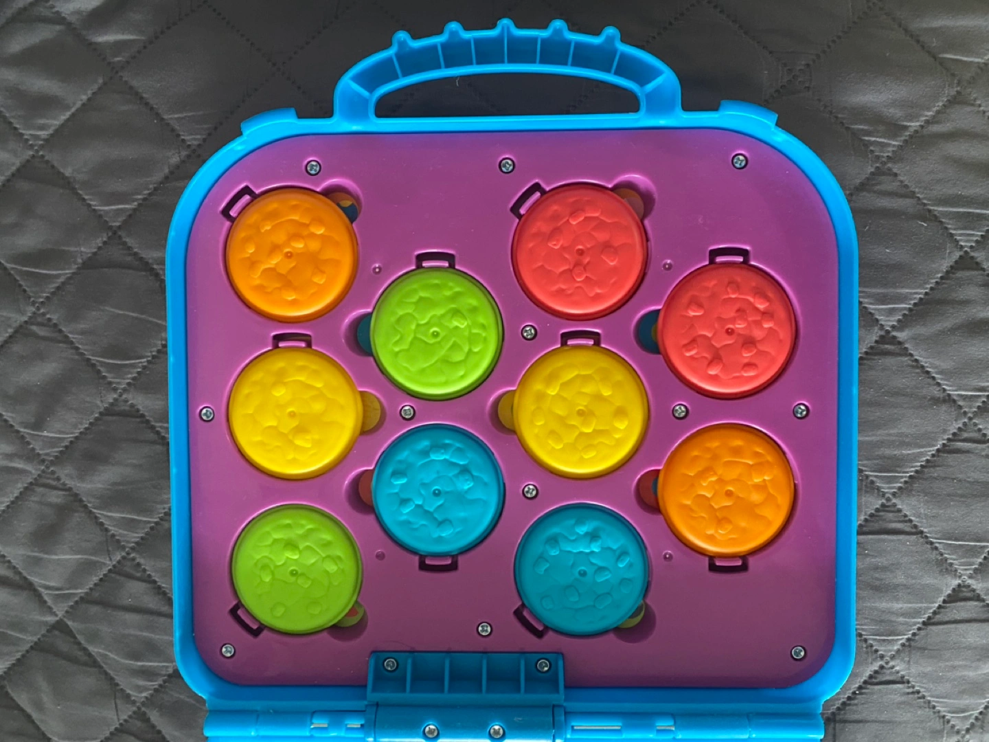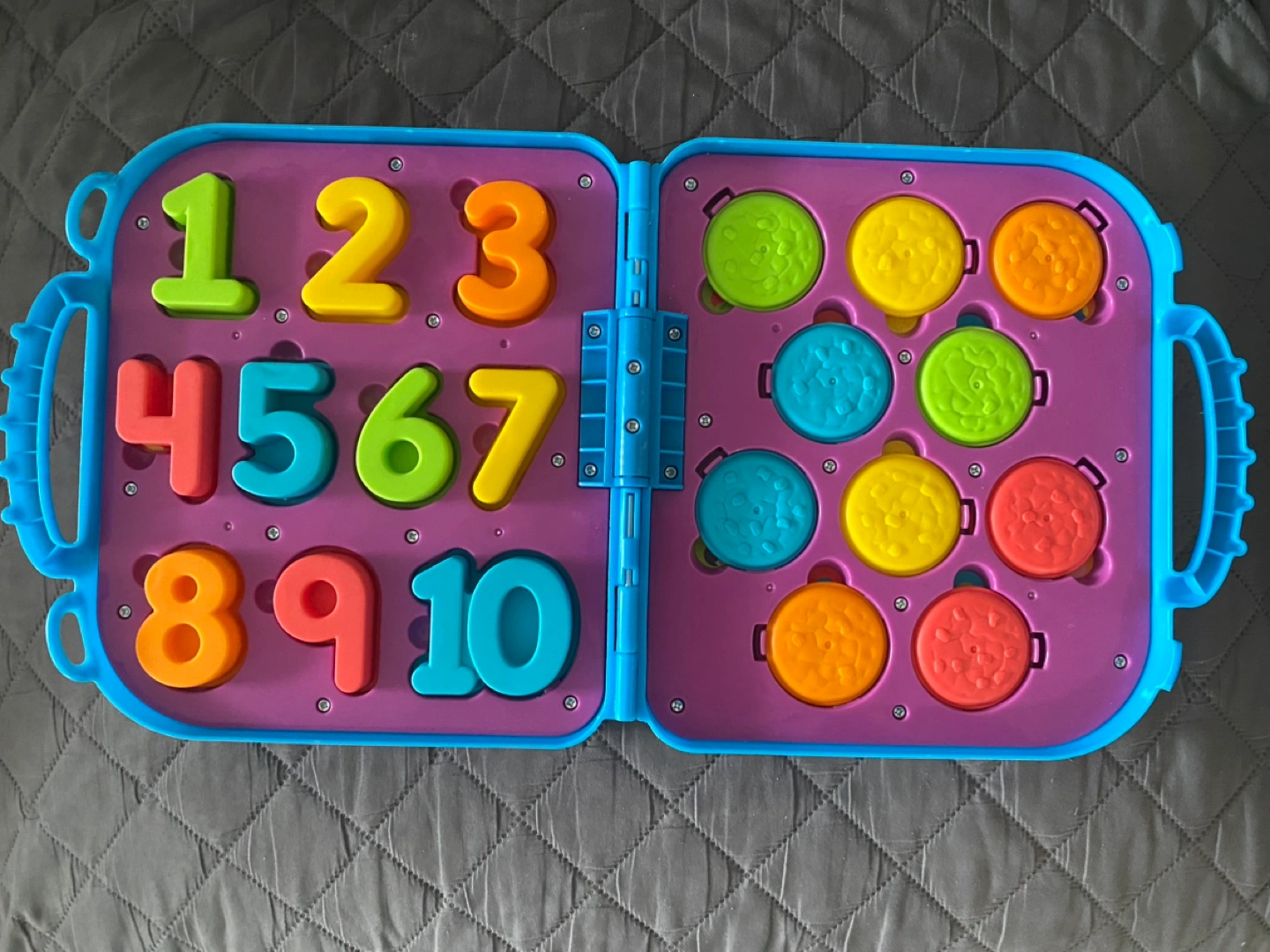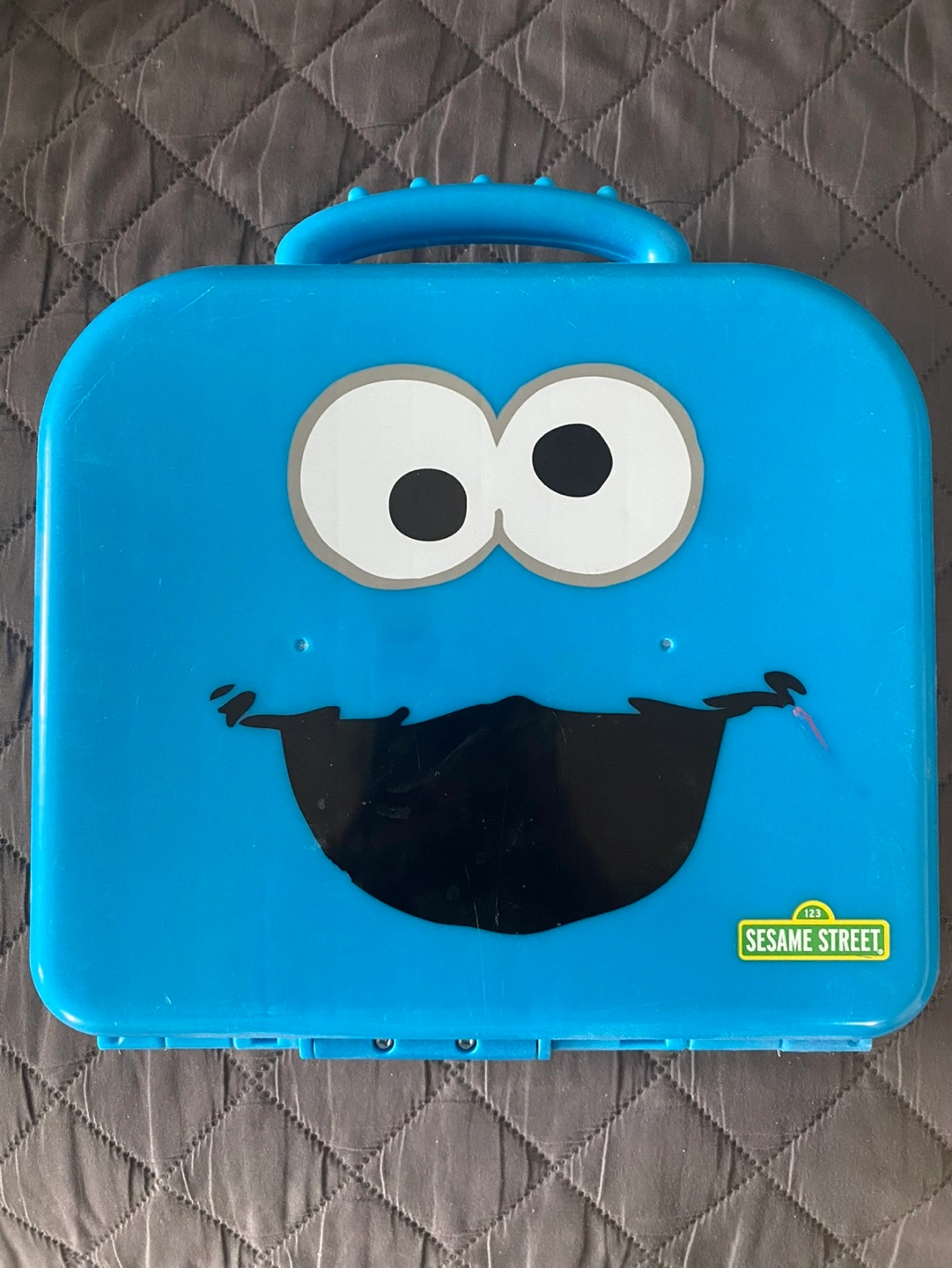 Fun educational toy features Cookie Monster. Includes number and colour matching activities. Portable suitcase design. Great for preschoolers.