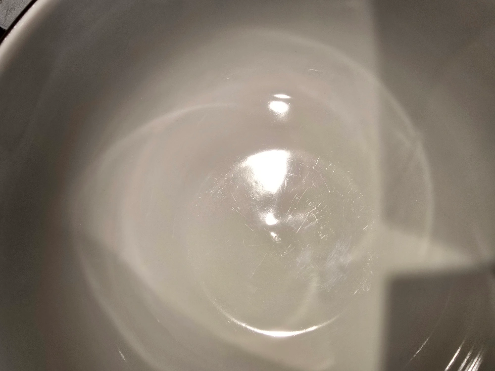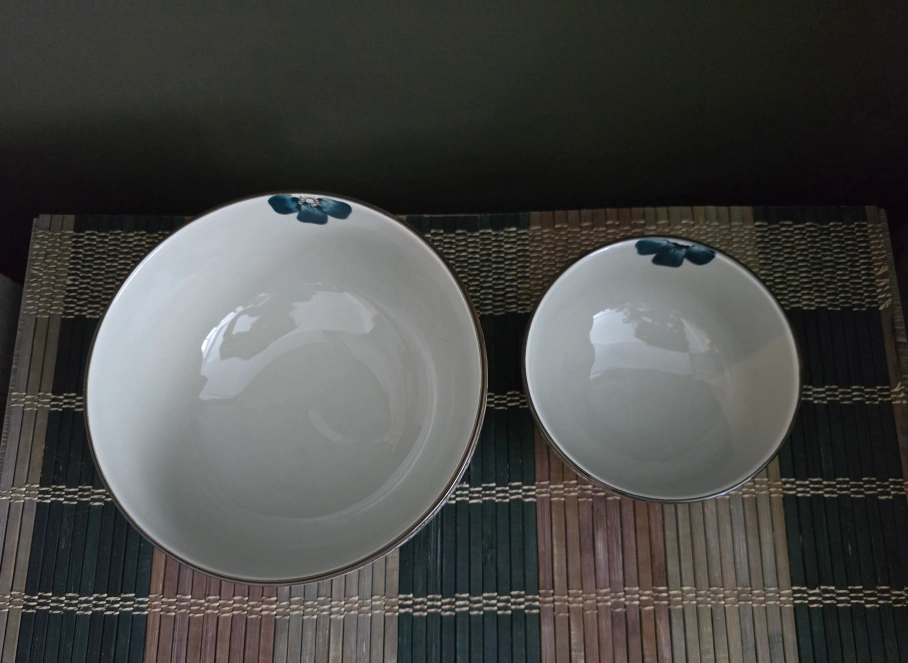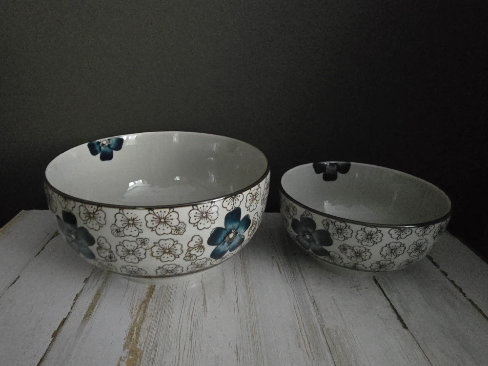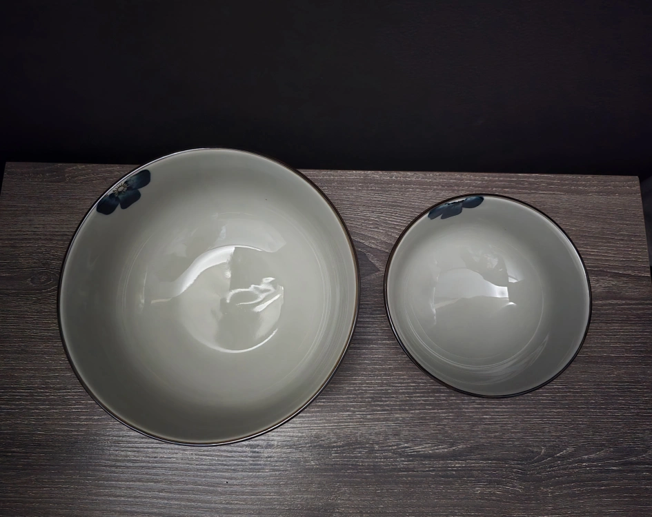 lightly used . The bigger bowl has mild unnoticeable scratch mark on the interior bottom. Small bowl has no scratch marks. 4.75 inches and 6.75 inches.