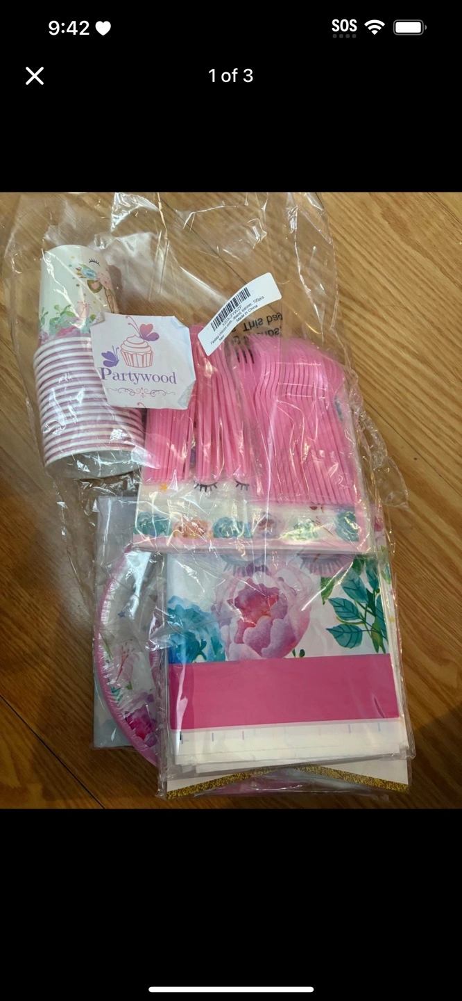 Unused unicorn-themed party supplies. Includes plates, cups, napkins, cutlery, balloons, and decorations. Perfect for a birthday party or celebration. NEW NEVER USED Buy for all $30 Buy by set unicorn party set 195pcs (16guest) -$$30 Decorations $10 the number of the balloon is #5 is duplicate.