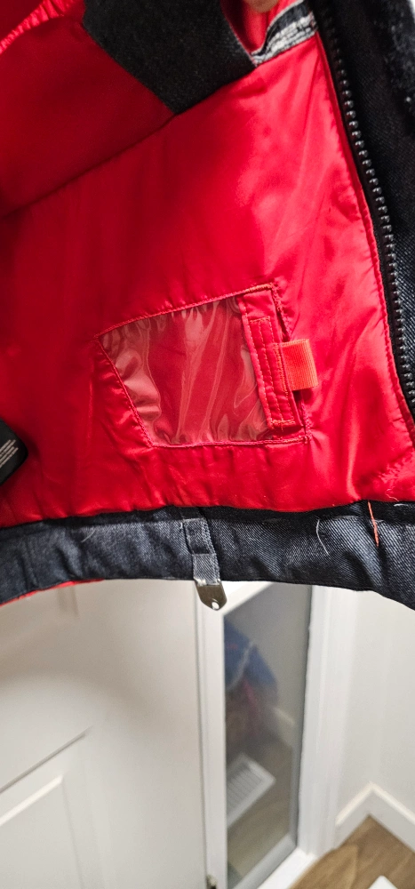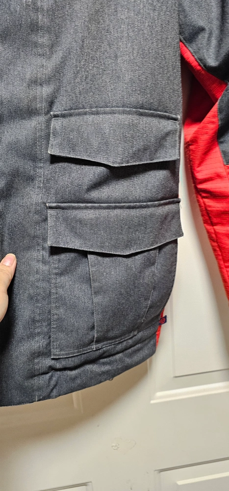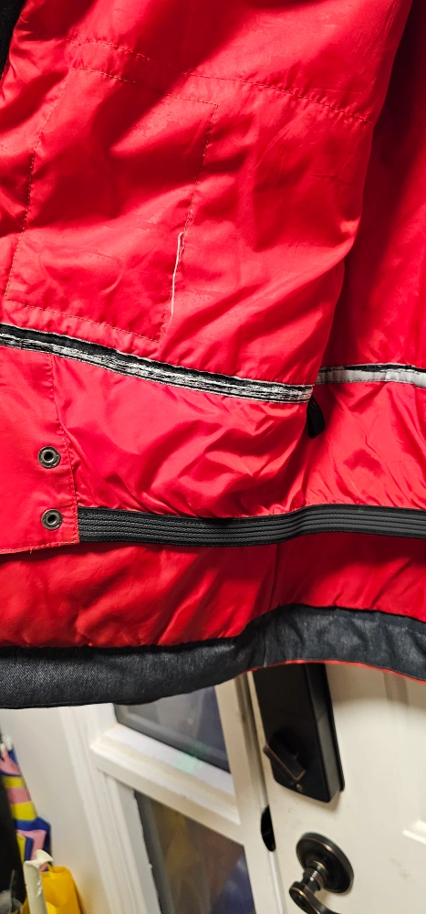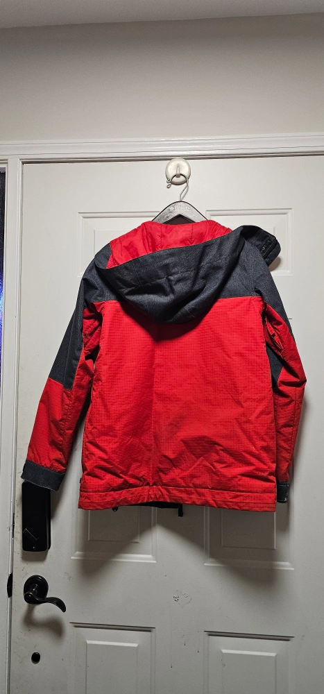 Burton kids snowboard jacket. Size large. Red and grey colour block design. Features a hood and multiple pockets. Good condition. Cash only pickup only in Valley Ridge NW Calgary