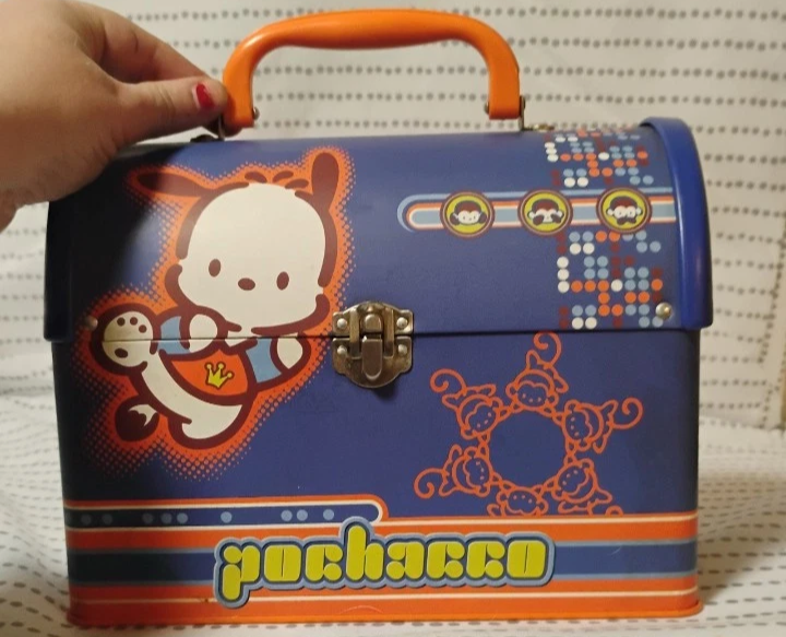 Vintage RARE Sanrio Pochacco trinket storage metal box with handle you can store anything in it Open to Offers excellent used condition