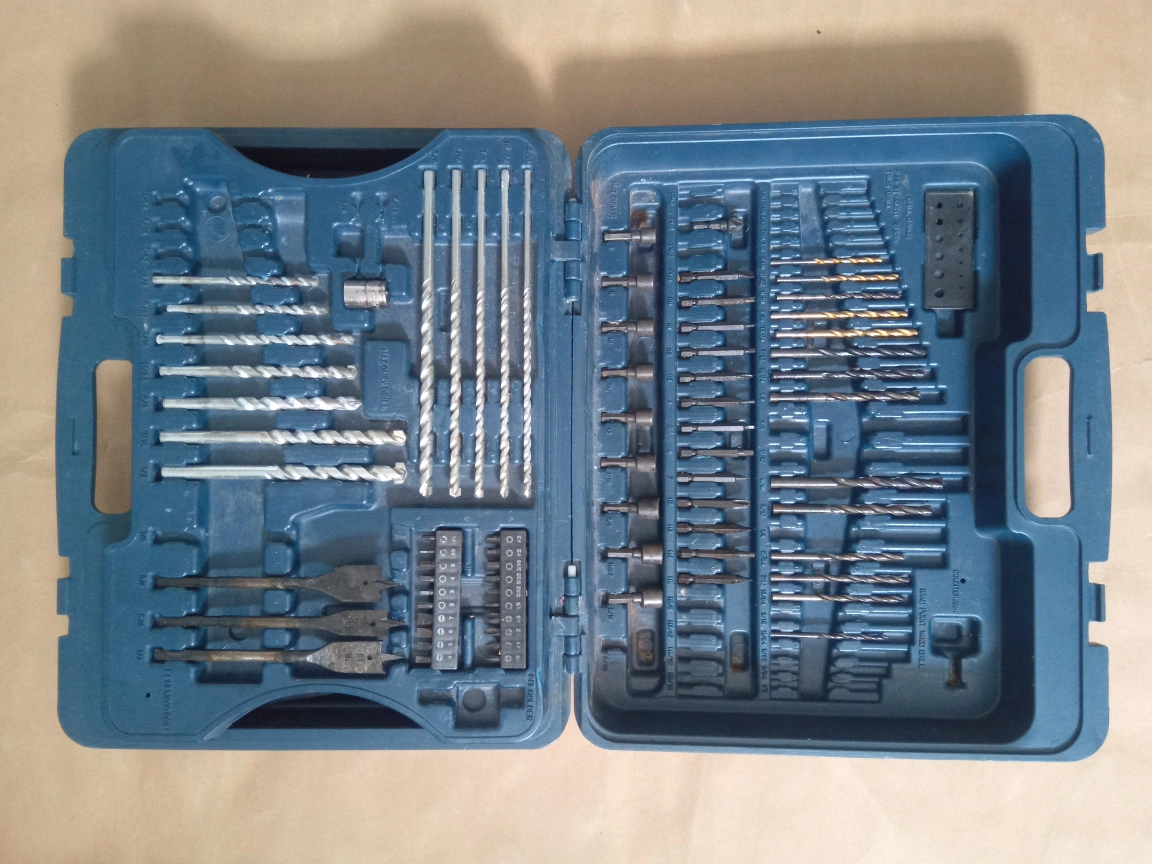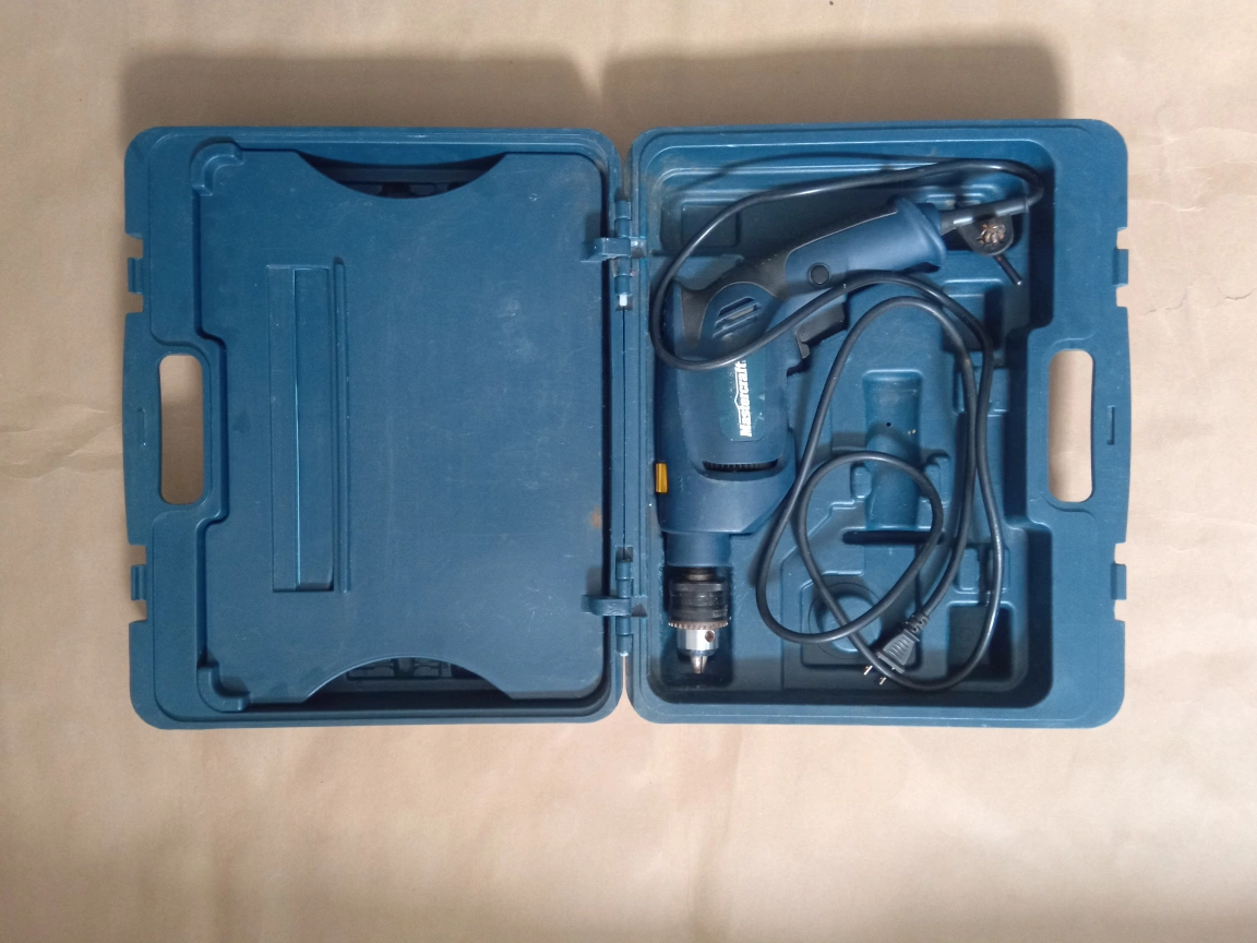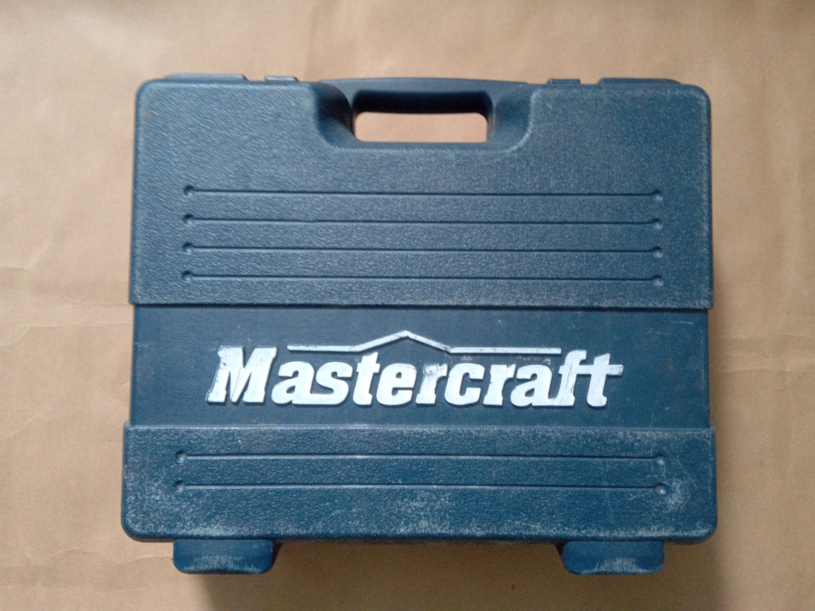 Used Mastercraft corded drill. Includes a carrying case and a variety of drill bits. Great for DIY projects.
