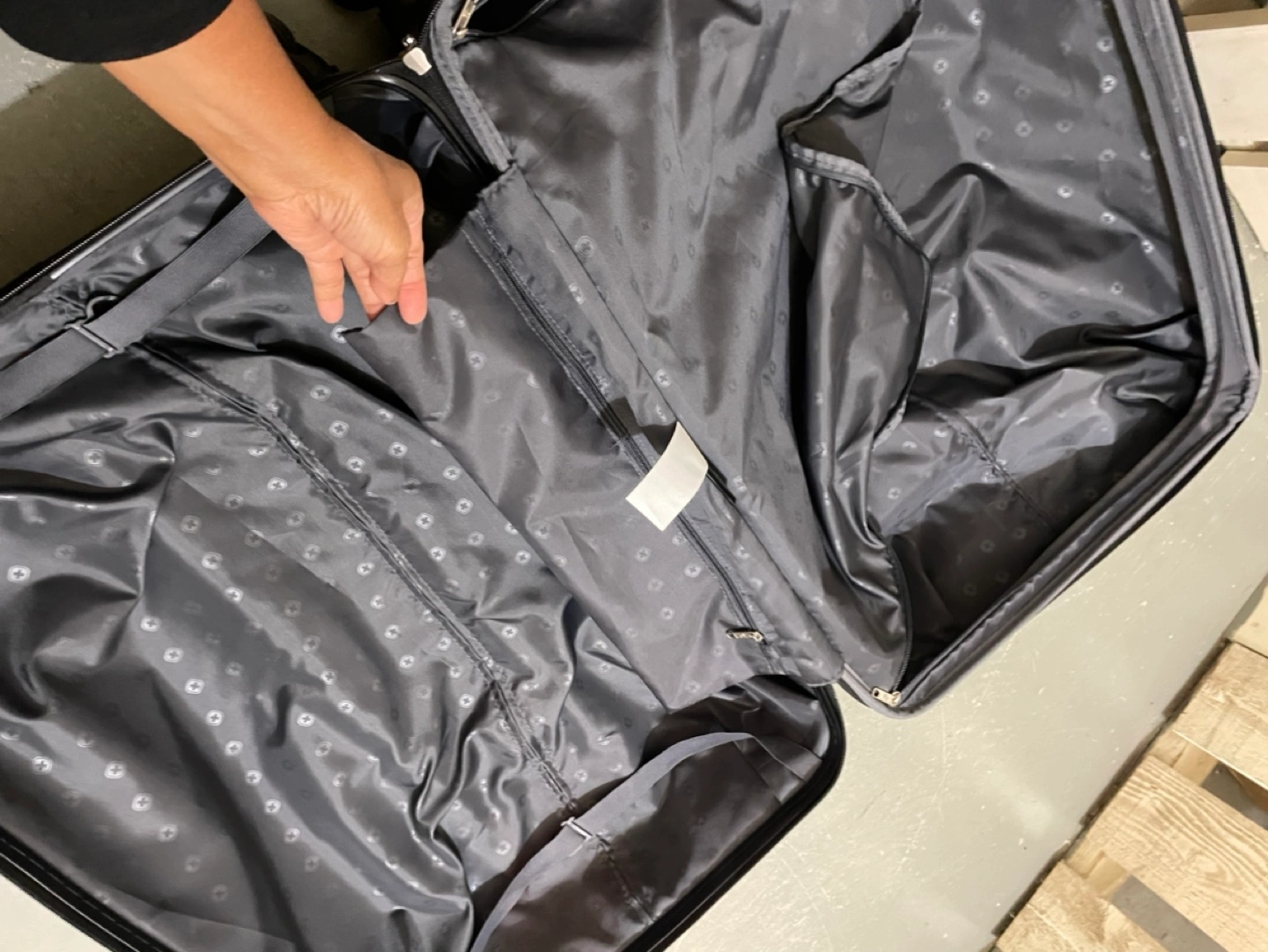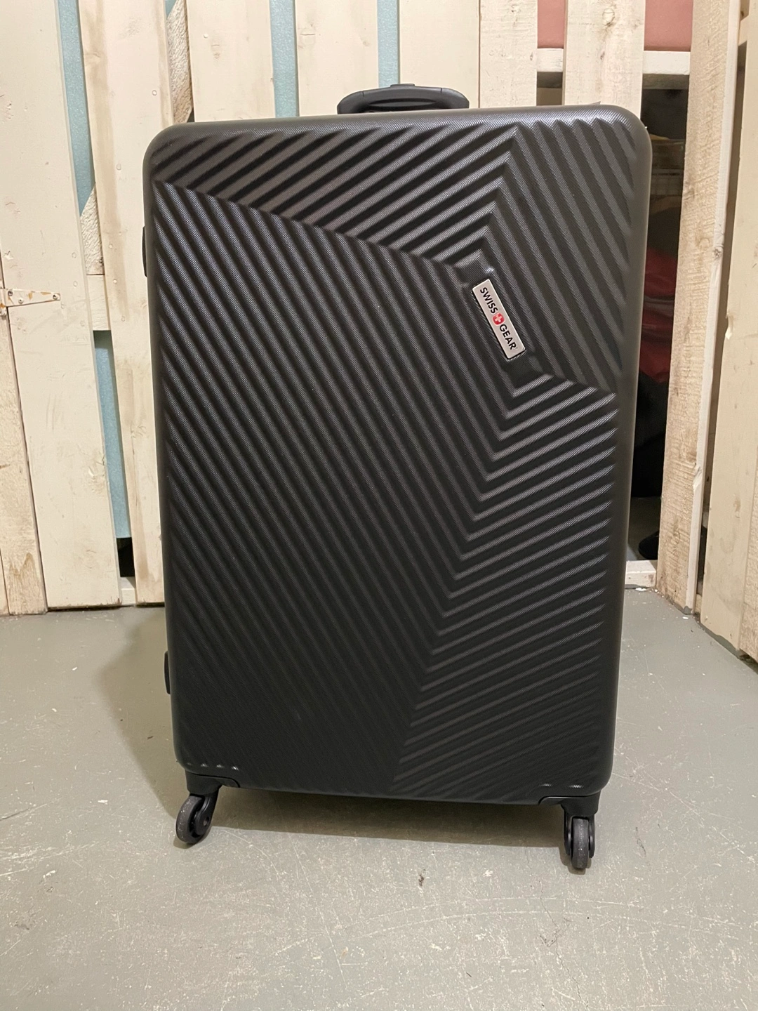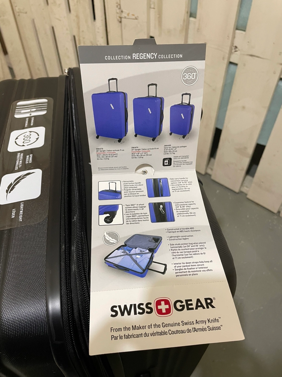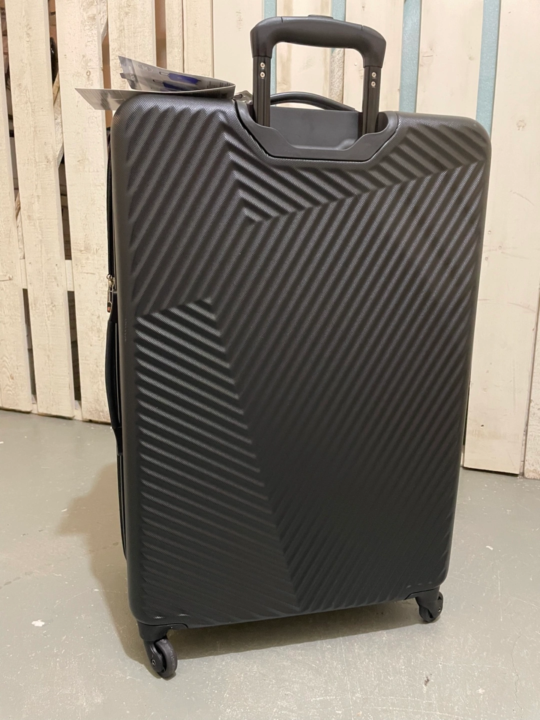 Brand New large checked suitcase. Black hard shell exterior. 360 Spinner wheels. Multiple compartments inside. Regency collection.