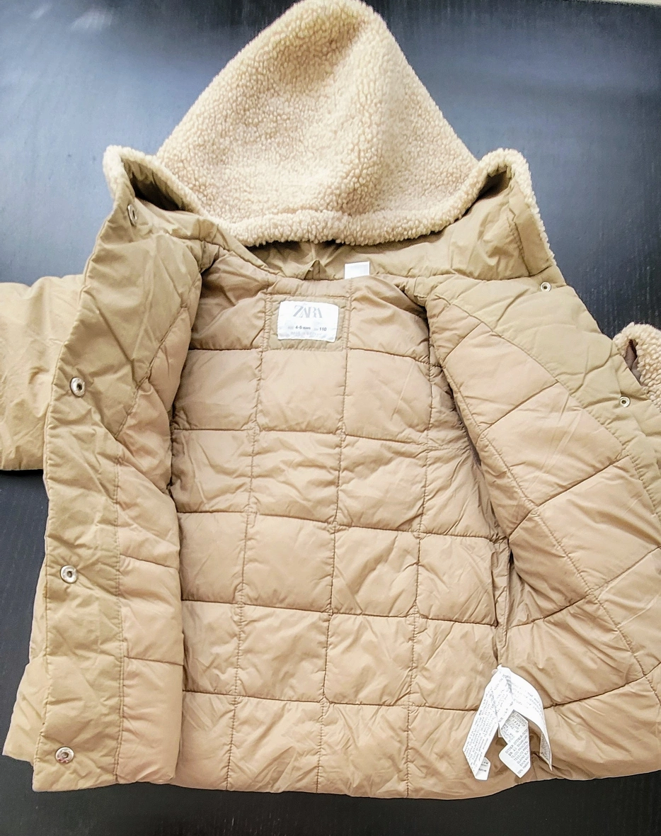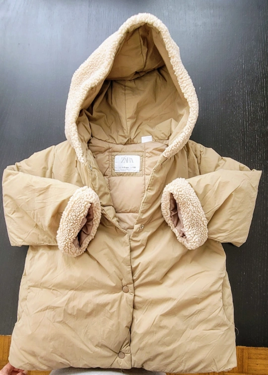 Zara Kids Beige Puffer Jacket with Sherpa Hood 4-5 years
