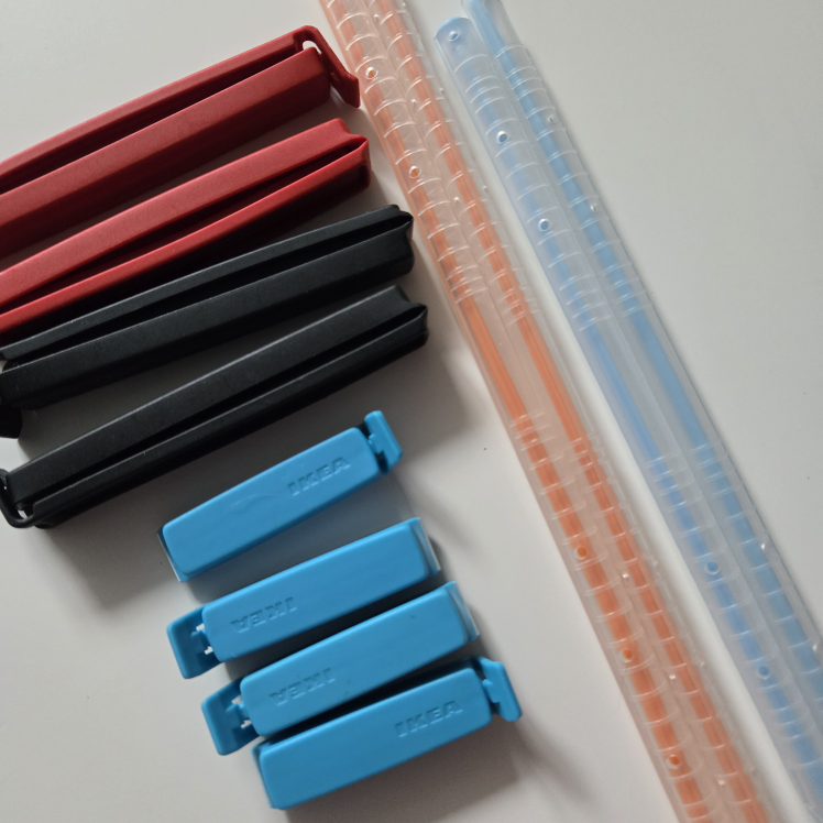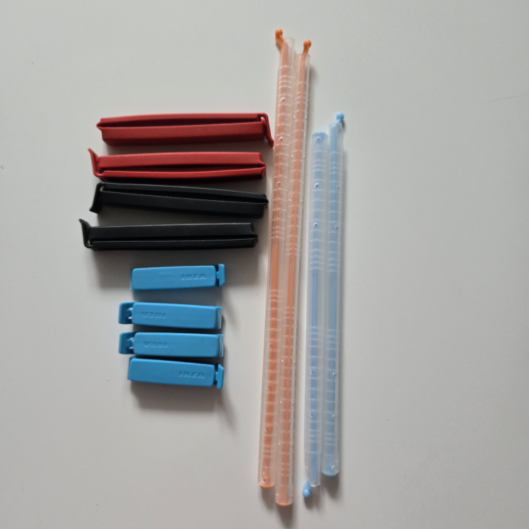 12 piece lot of bag clips and sealers. Includes various colours and styles. Perfect for organizing your pantry or kitchen.