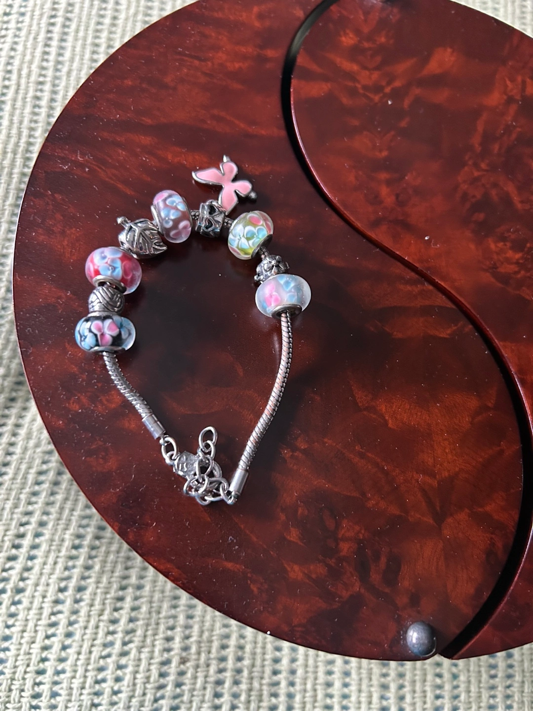 Charm Bracelet with Floral and Butterfly Beads