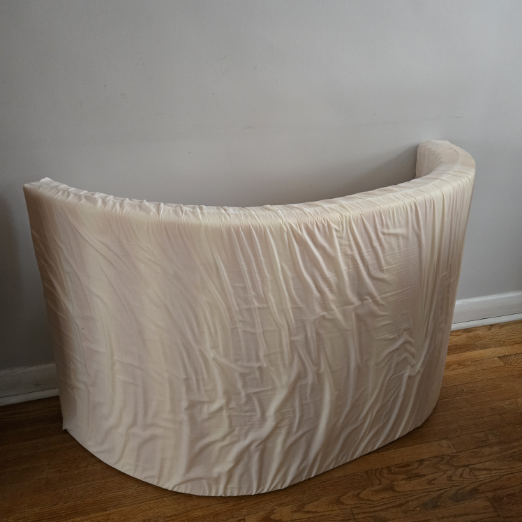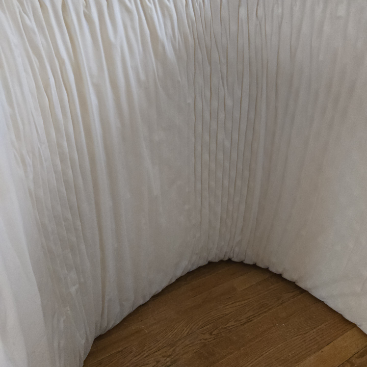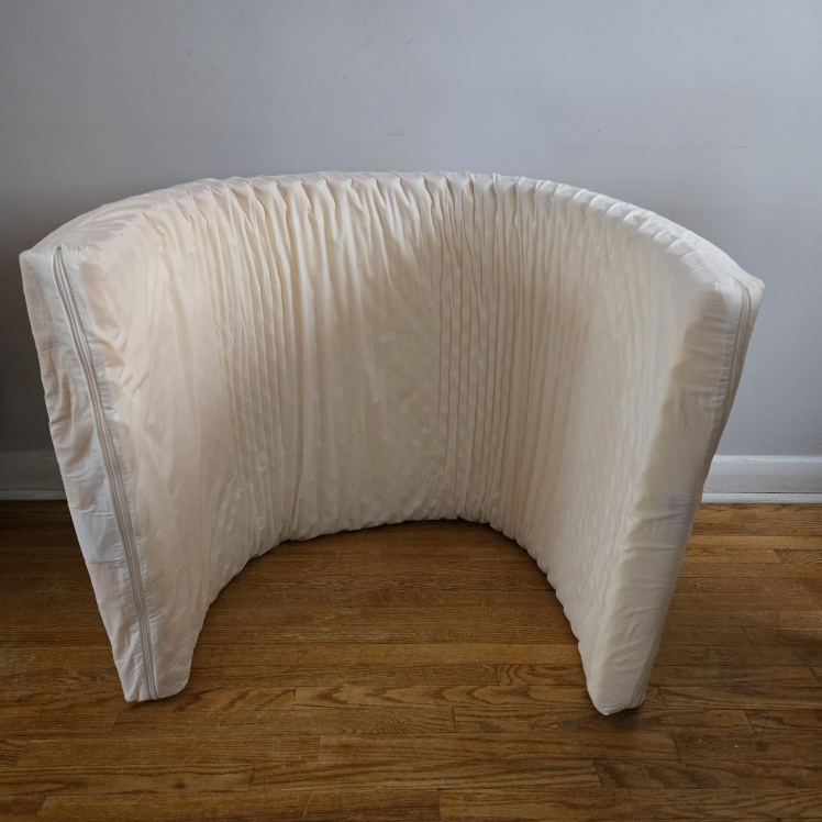 The mattress was rarely used & is rolled up & stored (see photos) but will lay flat again once it is used on the floor or bedframe.