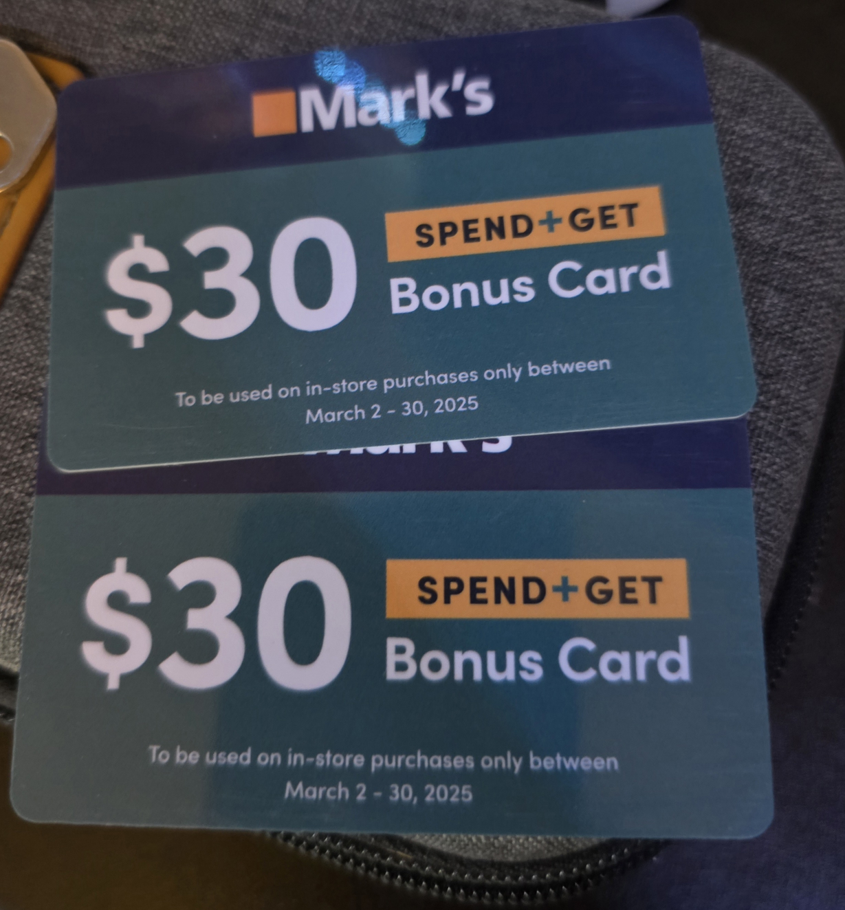 Two Mark's $30 Bonus Cards