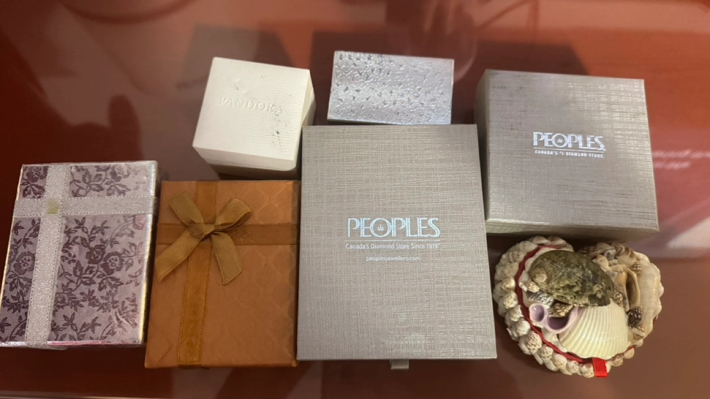 Collection of empty jewelry boxes. Various sizes and styles. Includes Pandora and Peoples boxes. Perfect for storing your treasures. Price stars at $5