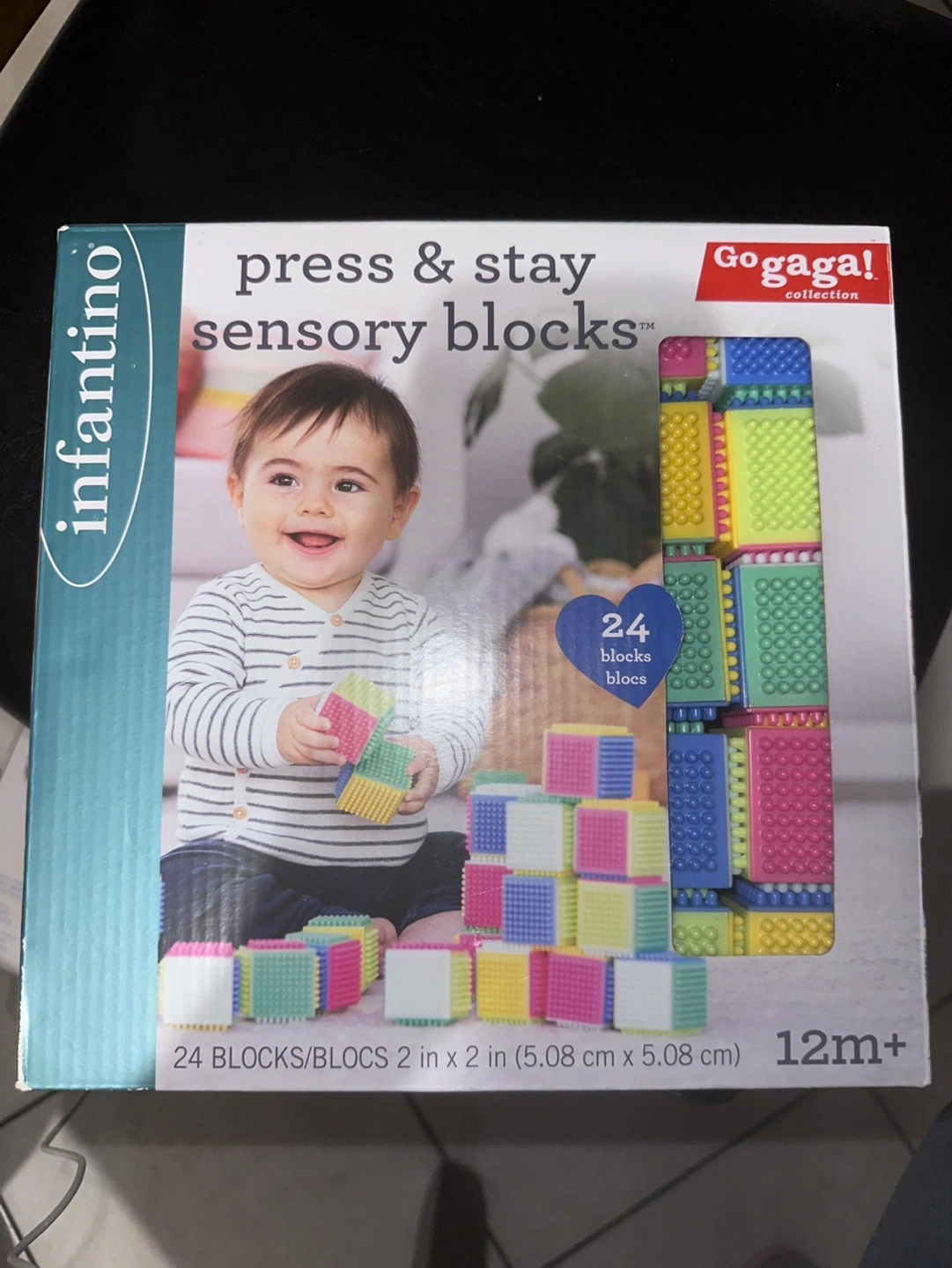 24 colourful sensory blocks. Great for developing fine motor skills. Suitable for 12 months and up.