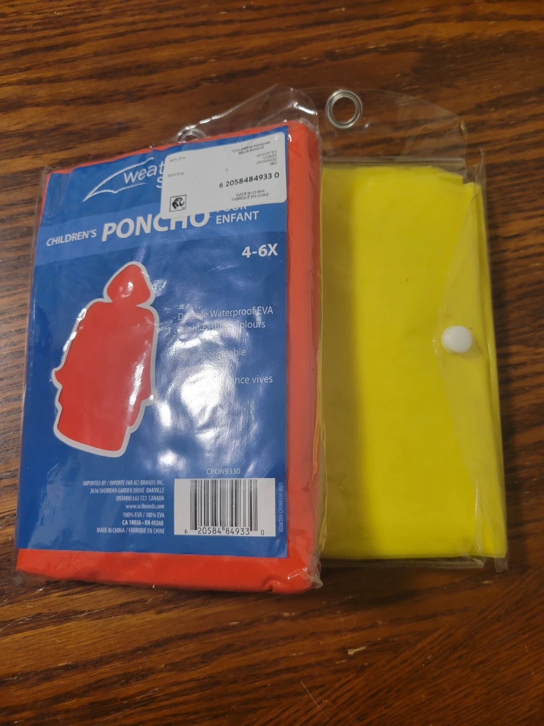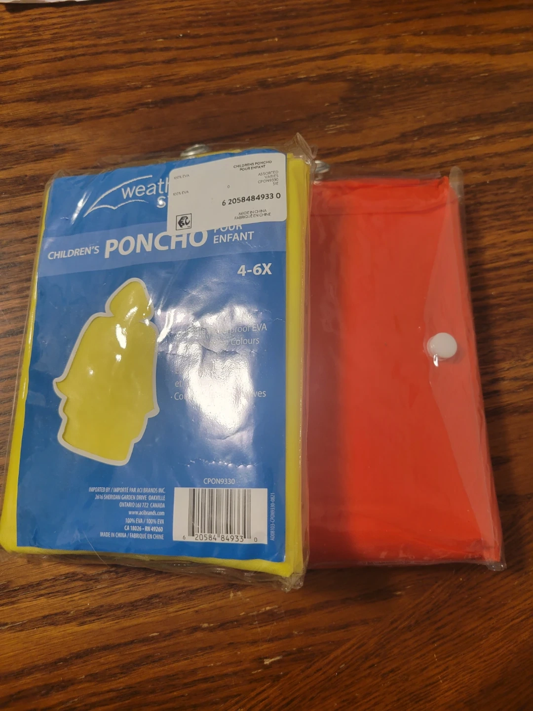 Waterproof EVA poncho for kids in a 4-6X size. It's lightweight and reusable. Comes with a handy carrying pouch.