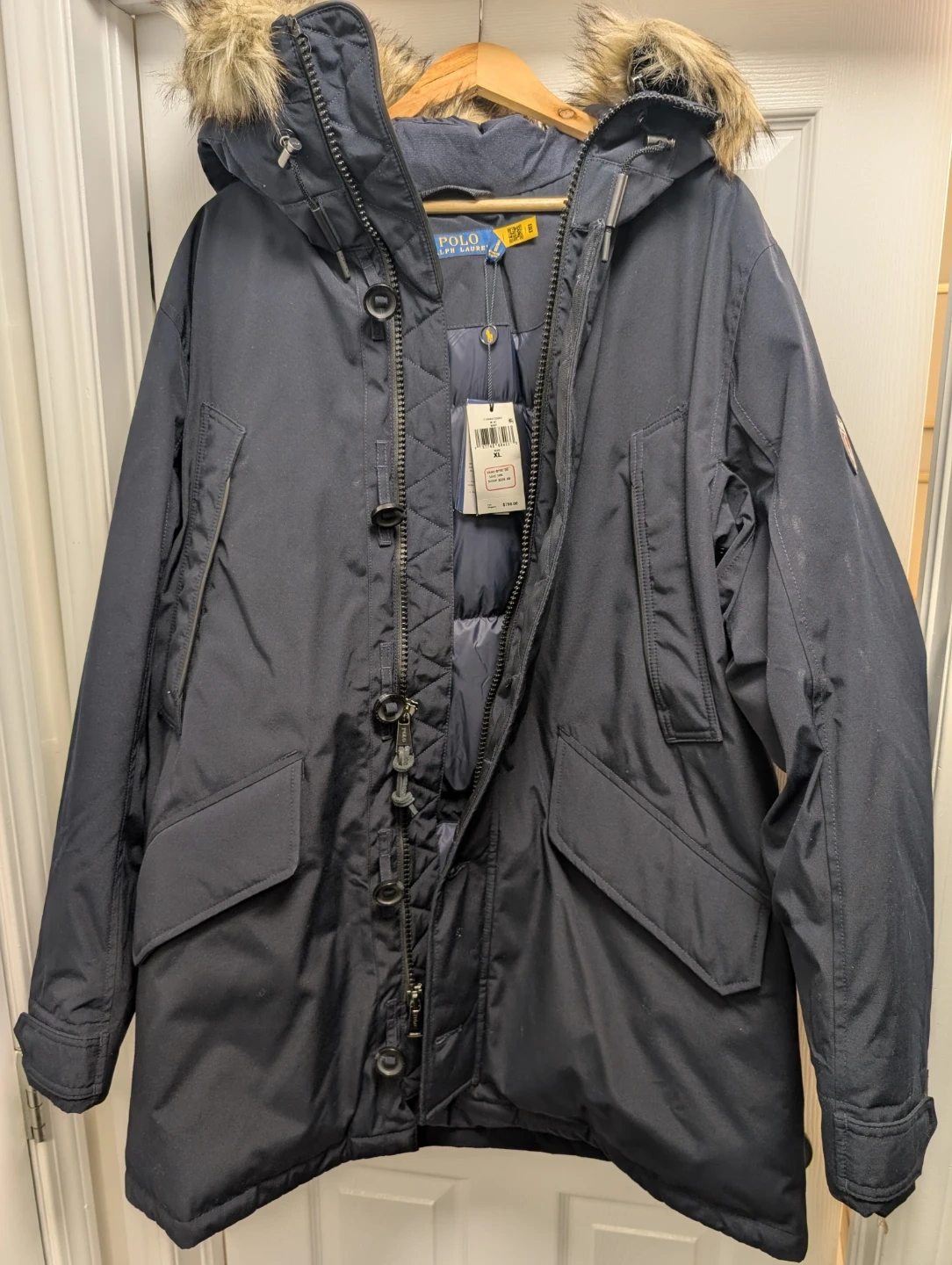 Selling a brand new Polo Ralph Lauren parka, size XL. It's never been worn and still has the tags attached! The jacket is a stylish and warm option for those cold Canadian winters