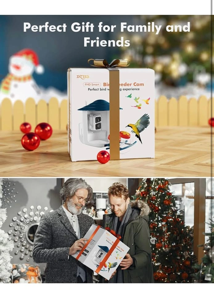 Dzees Smart Bird Feeder with Camera, Wireless Outdoor Bird Feeder, Auto Capture Video, AI Identify Bird Species, 2K HD Bird Watching with Solar Power, Ideal Gift for Parents