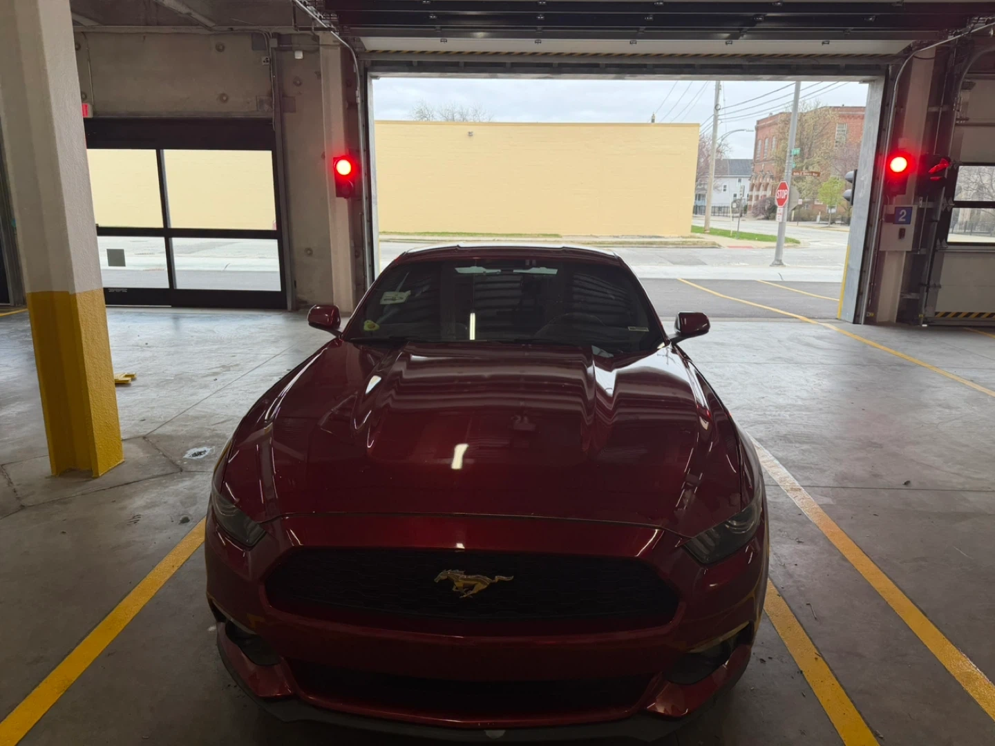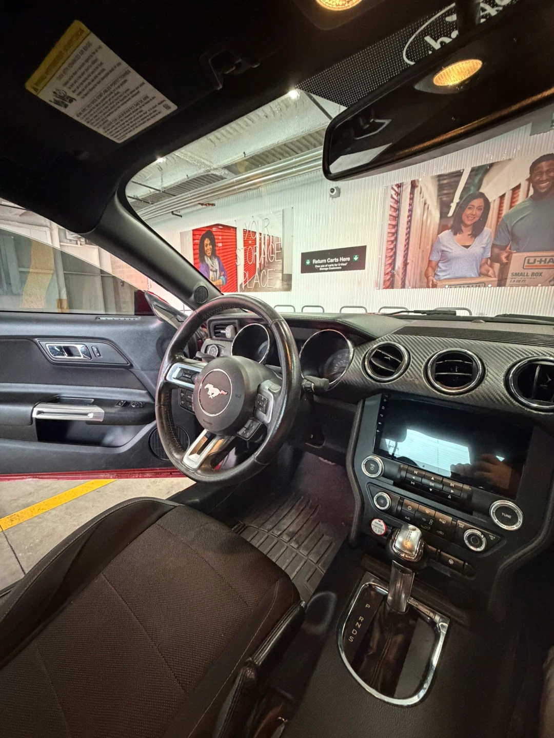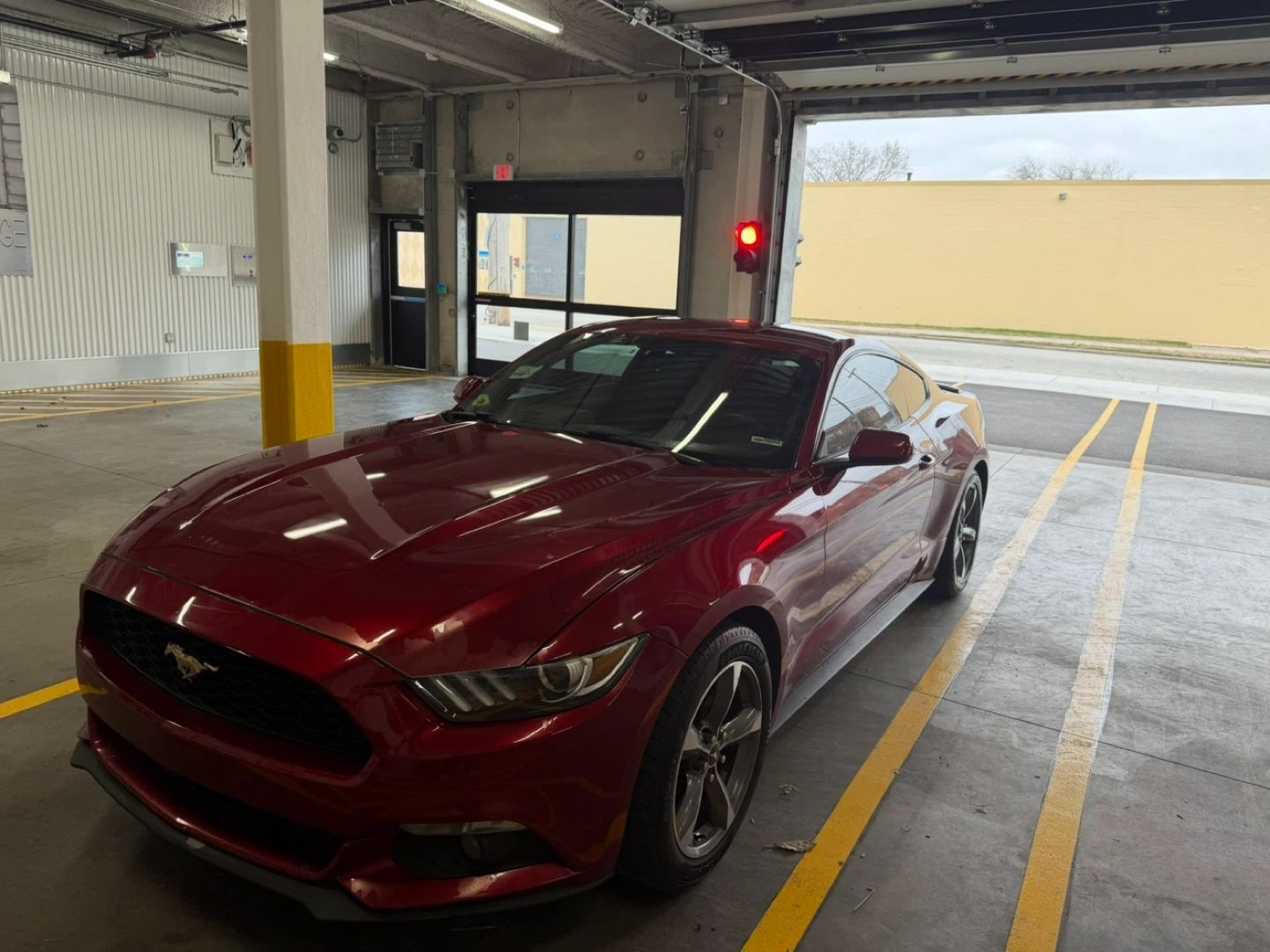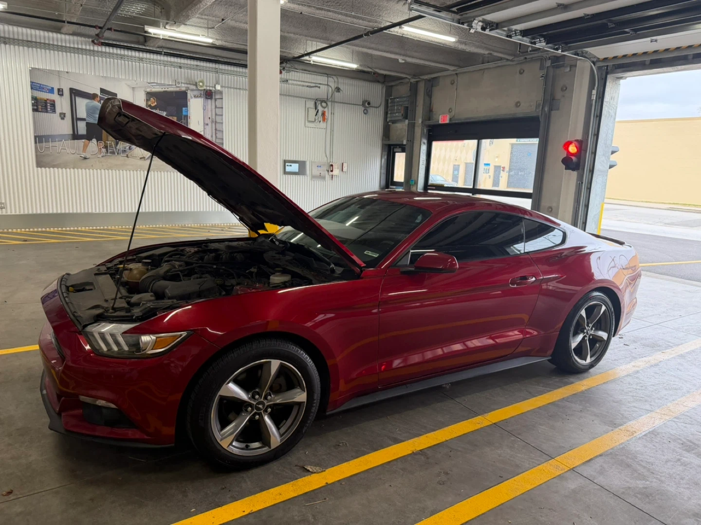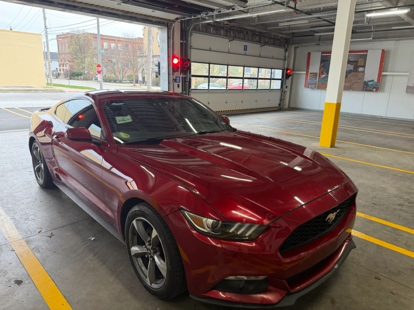 Sharp red Ford Mustang coupe for sale. This sleek car offers a classic American muscle car experience. It's a two-door model with a distinctive design.