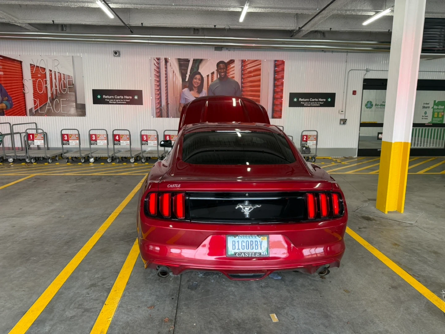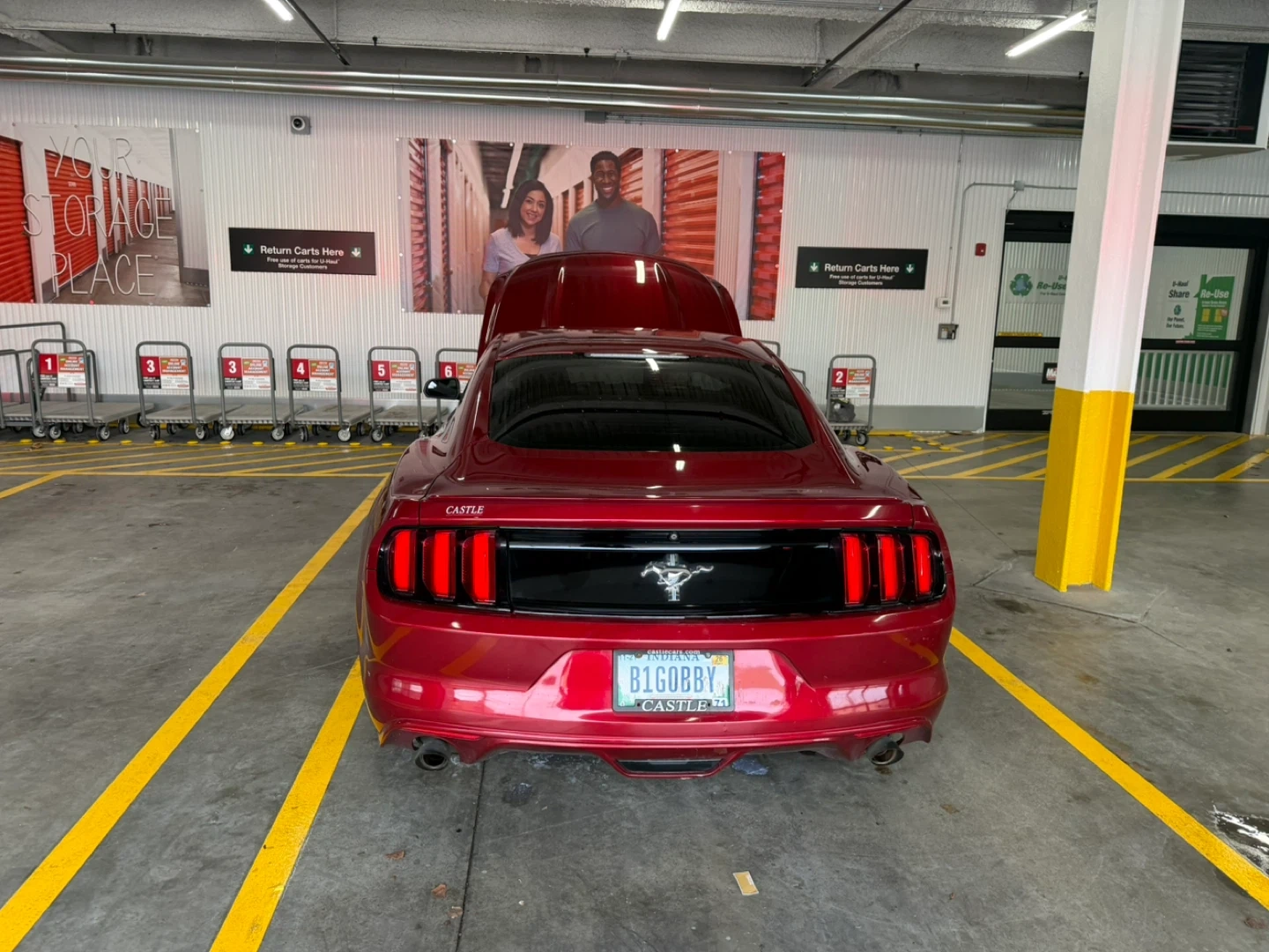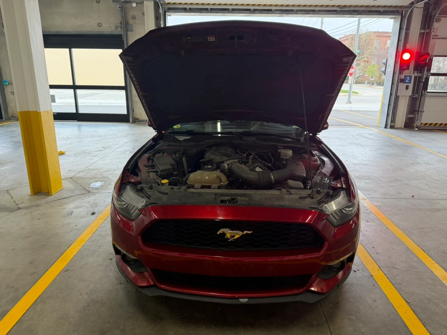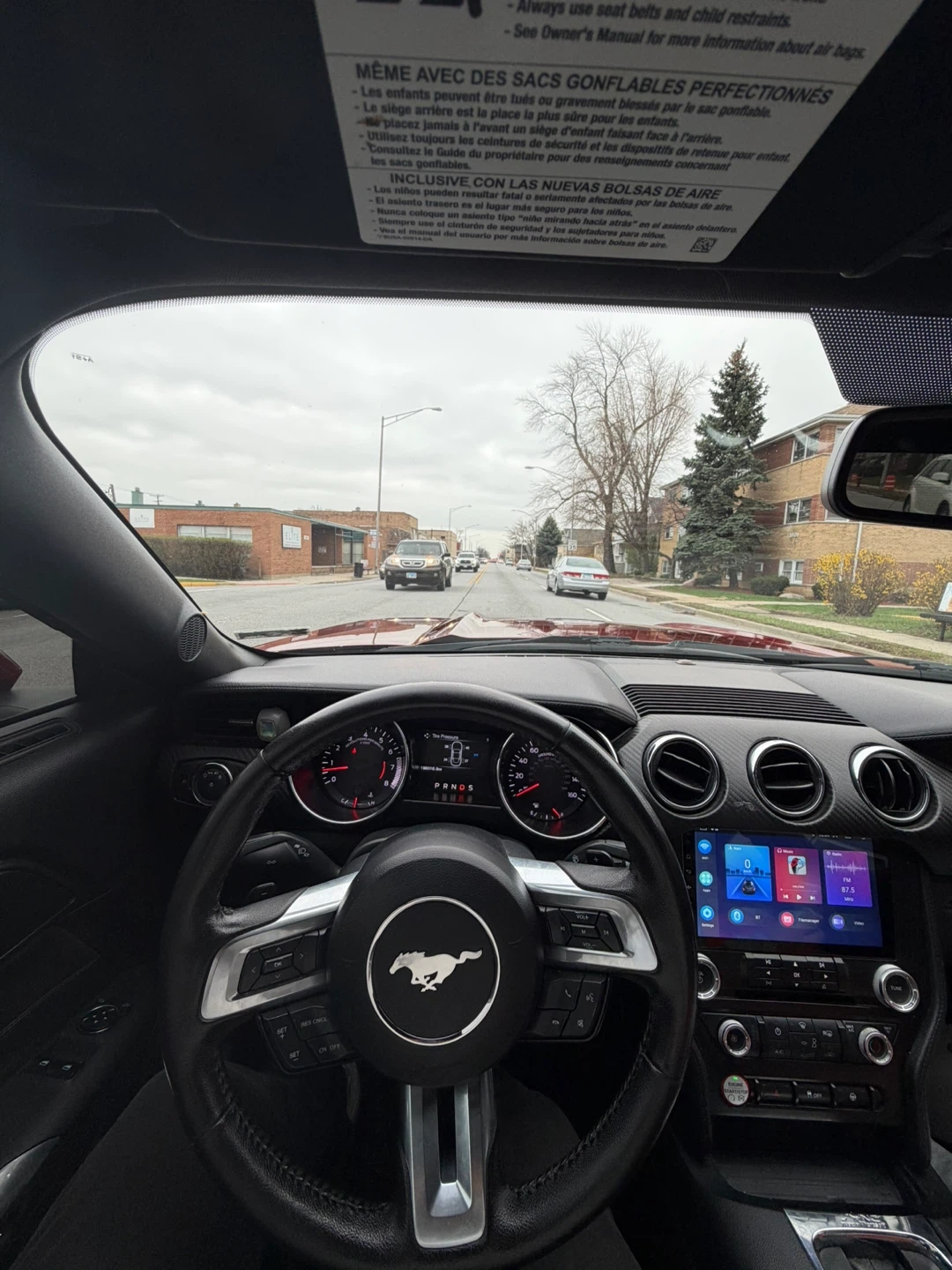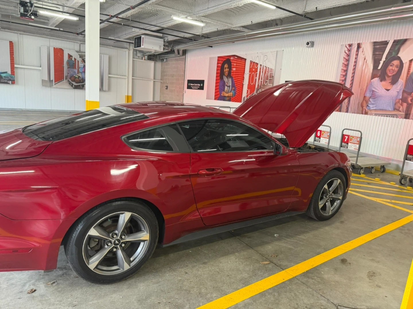 Sharp red Ford Mustang coupe for sale. This sleek car offers a classic American muscle car experience. It's a two-door model with a distinctive design.