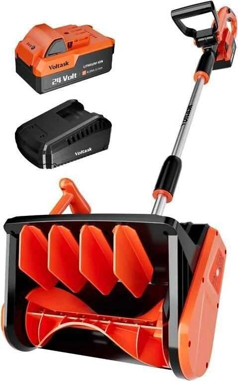Brand new VOLTASK 24V 13-inch Cordless Snow Shovel Electric Snow Blower with Directional Plate, Battery & Quick Charger Included for Driveway & Sidewalks.