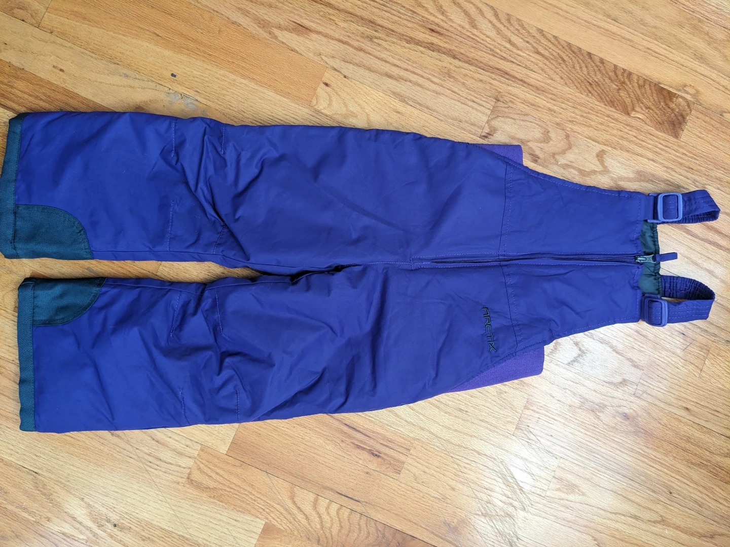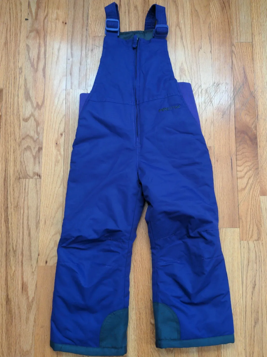 Blue Arctix snow bibs for toddlers. Insulated and water-resistant for cold weather fun. Includes adjustable straps for a comfortable fit. Perfect for playing in the snow!