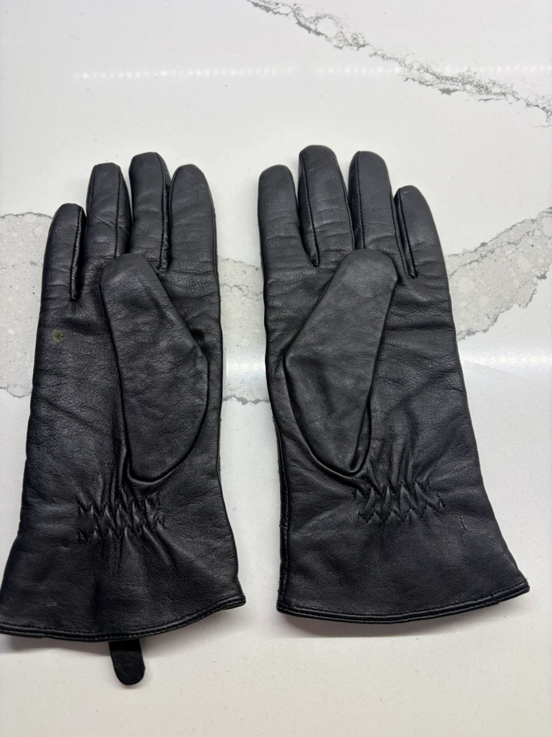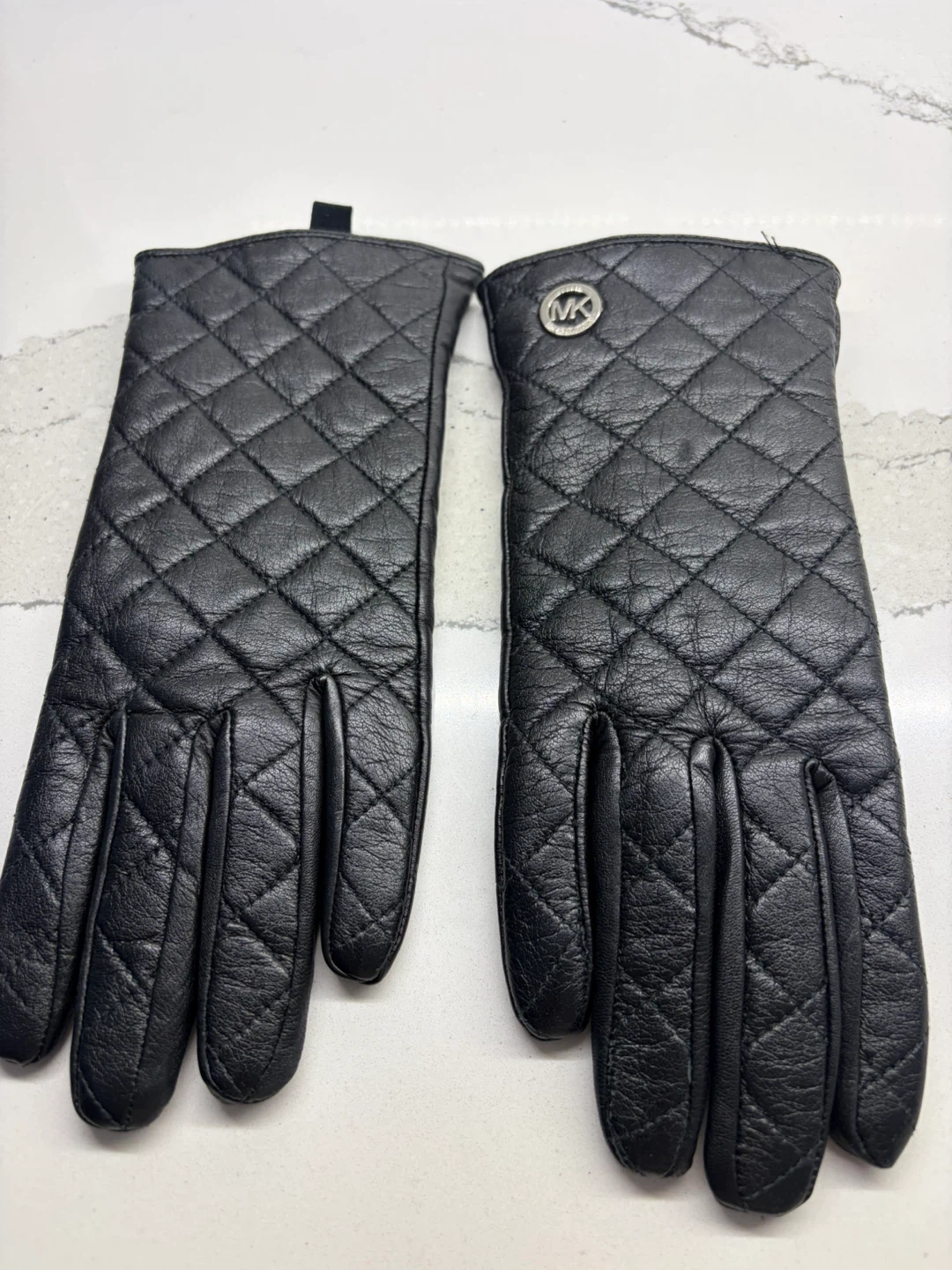 These Michael Kors gloves are made from genuine leather with a quilted design. The lining is 100% polyester. They're a size XL but fits smaller. Dry clean only.