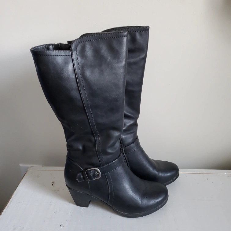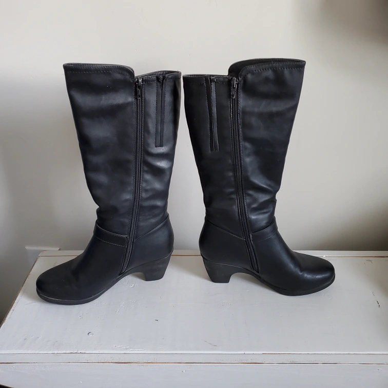 Naturalizer "Gracie", black, riding boot, size 7. Fleece lined. Gently used, well cared for. Vegan leather.