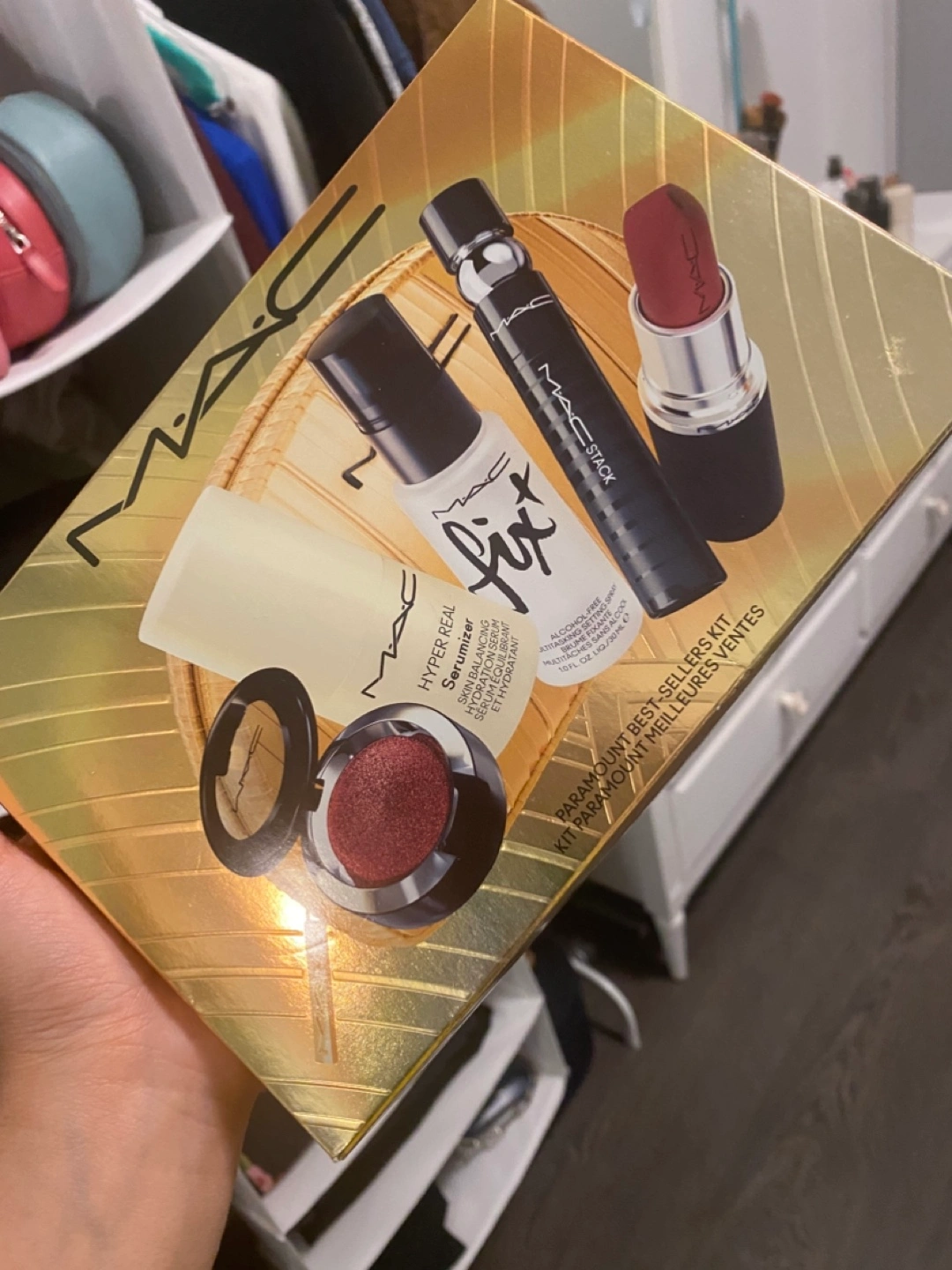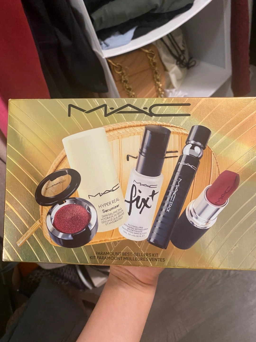 BNIB New MAC Cosmetics kit. The kit includes lipstick, eyeshadow, setting spray, and serum and makeup bag. Perfect gift or for personal use.