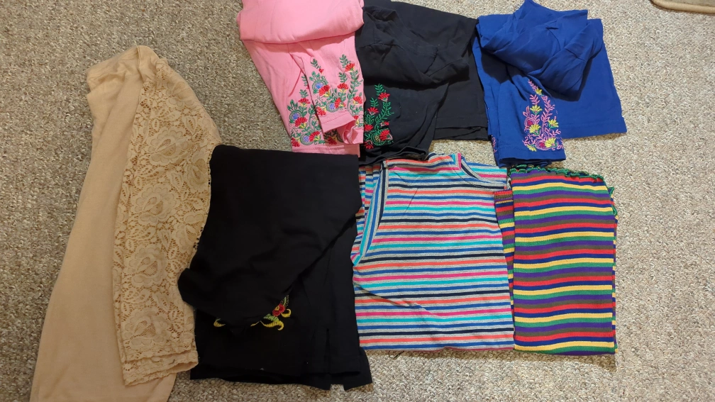 Bundle includes ninewomen's tops and blouses. Various colours and styles. Size varies. Some with long sleeves, others short. Includes embroidered and patterned tops. Great for layering or everyday wear.