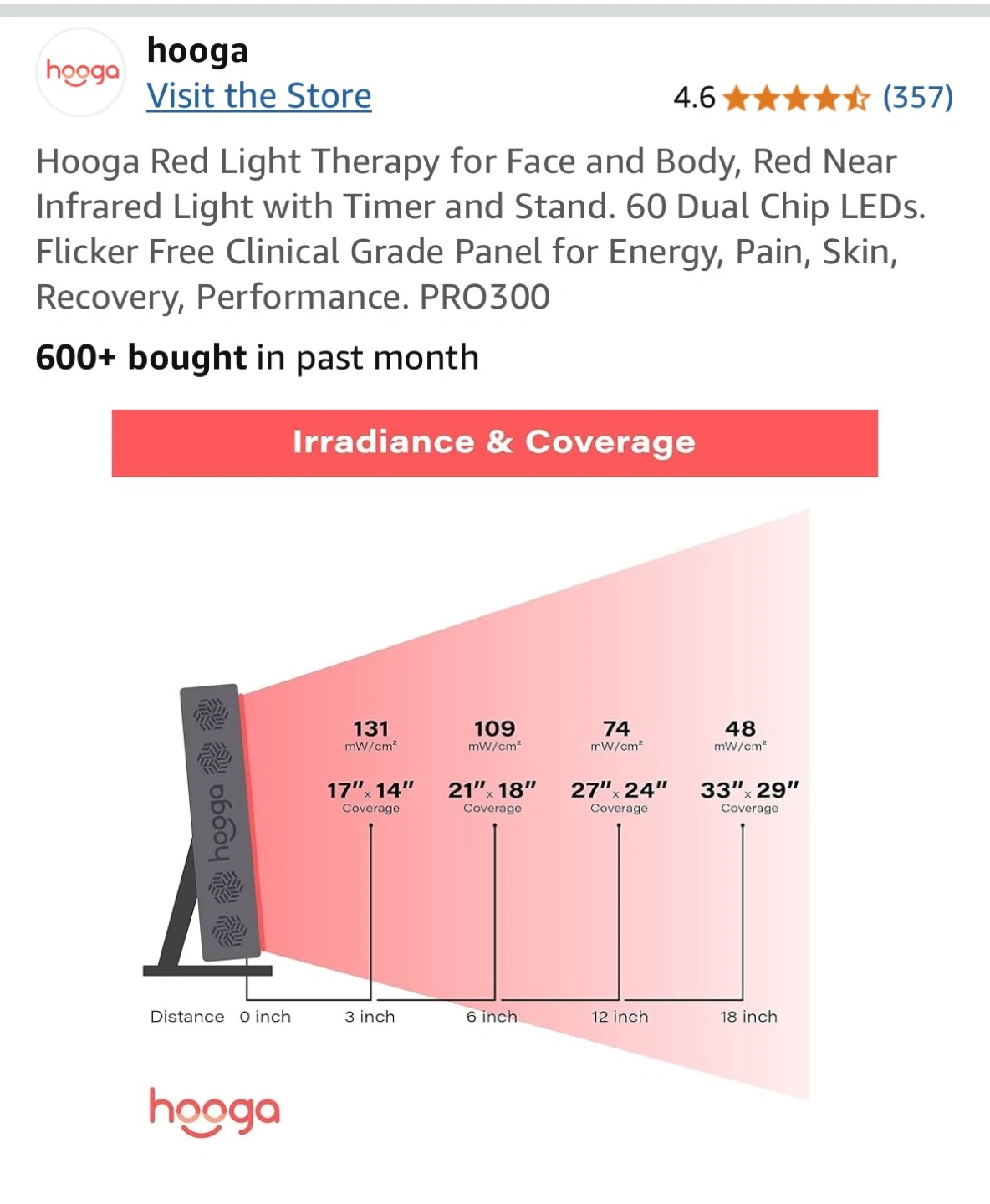 Hooga Red Light Therapy Panel PRO300