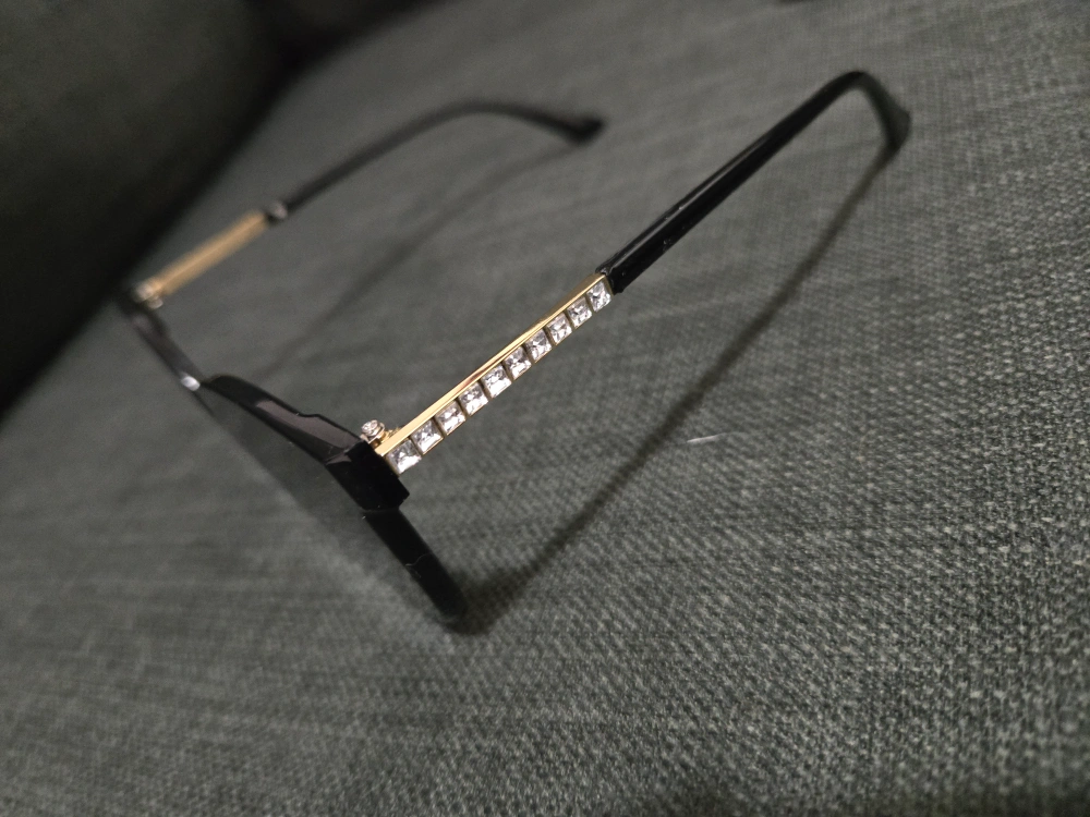 Features a cat-eye shape and rhinestones along the arms. Includes a black leatherette case. Didnt really use it not even once. Wrong size. Too big for my face.