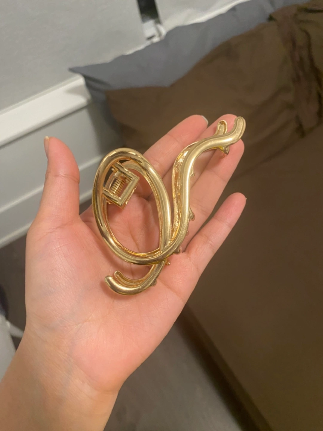 Elegant gold hair claw. Unique design. Perfect for styling hair. Secure hold.