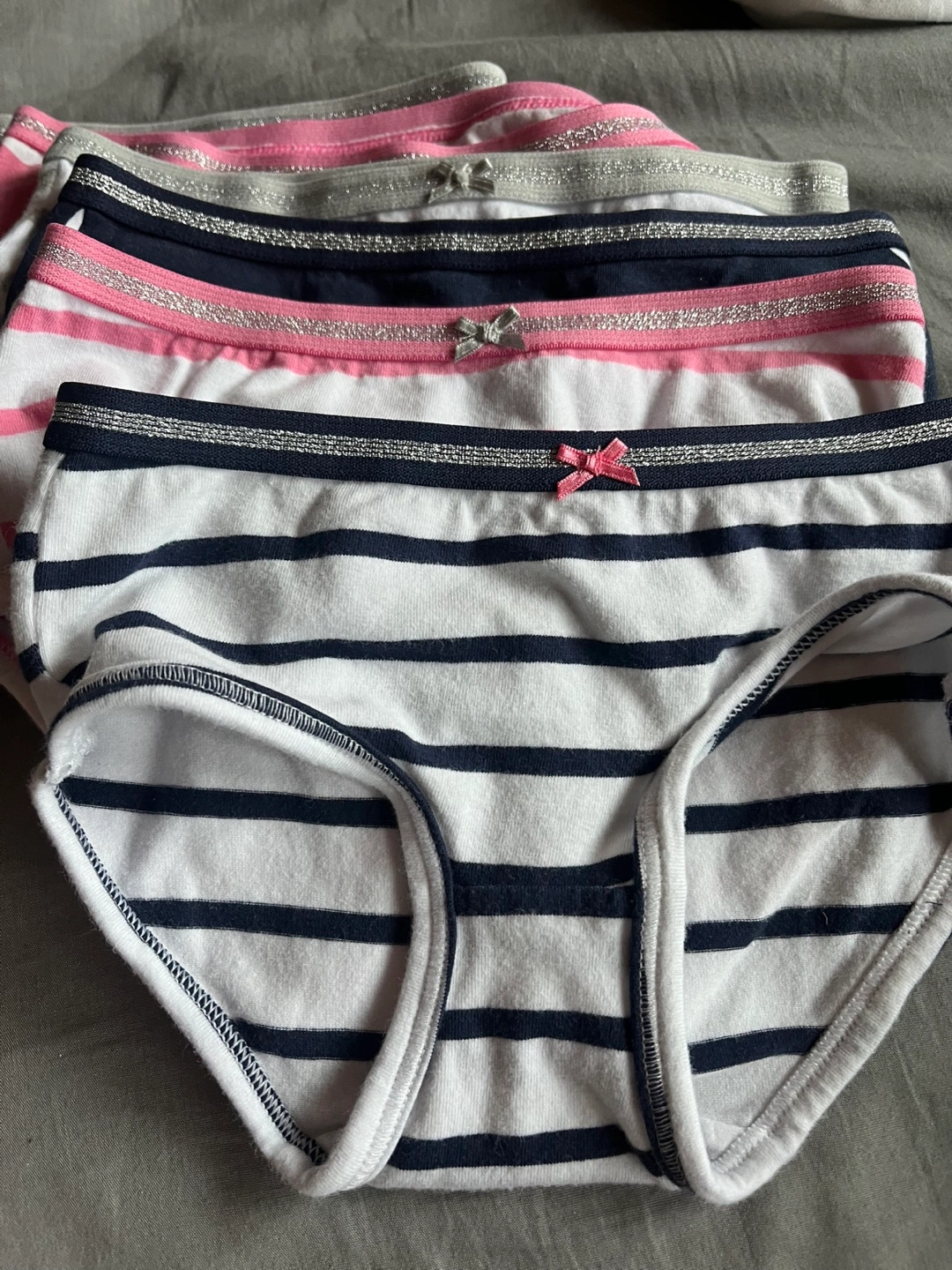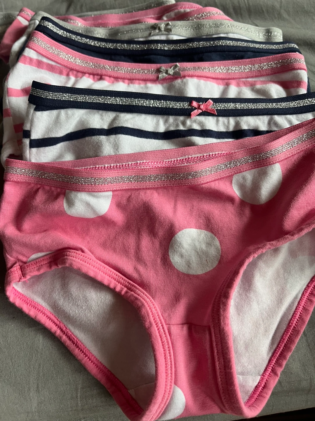 New, never worn Seven pairs of girls' underwear. Size 2/3. Assorted colours and patterns. Cotton blend. Pet free, smoke free home
